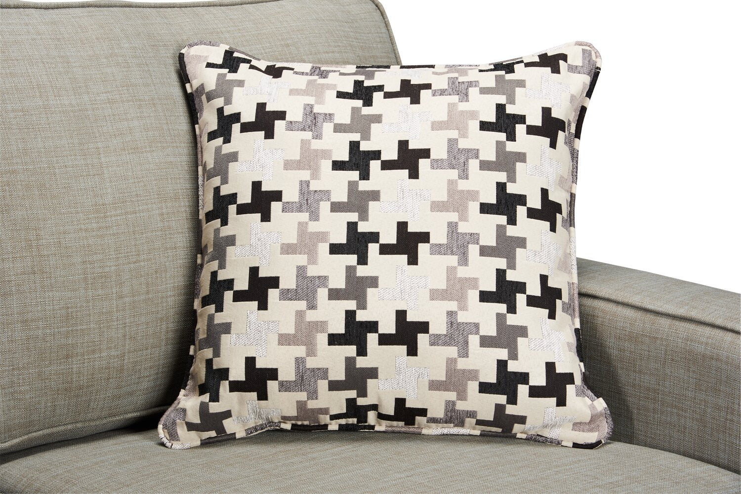 | Accent Pillows | Yes: two in a white, grey and black houndstooth pattern, each filled with Dacron fibre fill. |