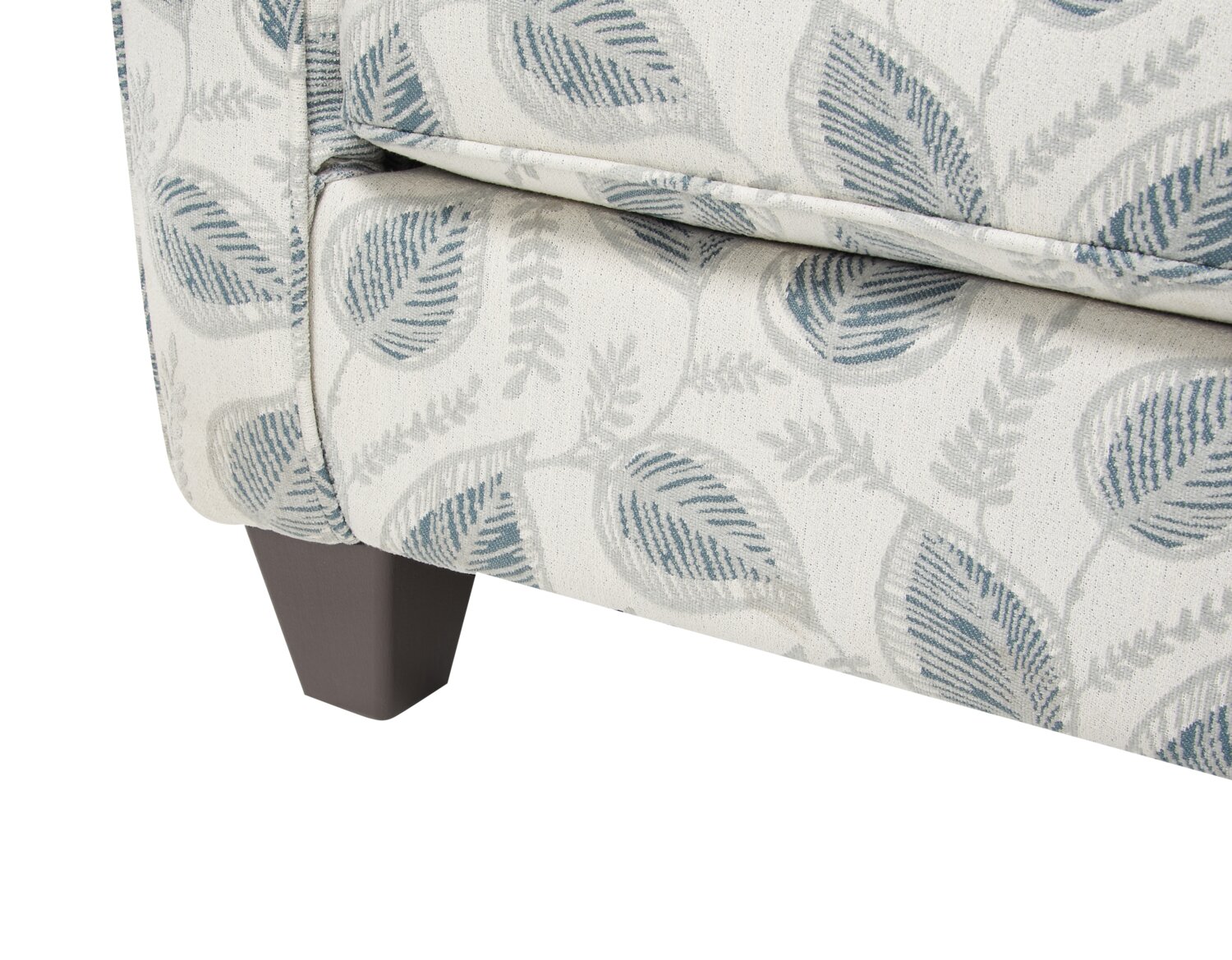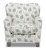 Ready to play host for your friends and family, this patterned Scarlett accent chair turns your living room into the perfect entertaining space. Blue and grey leaves dance across the off-white fabric to give your space a sense of serenity. Matching fabric piping outlines every edge of this piece, including the high-density foam cushions you'll want to relax on. Classic features like rolled armrests allow this piece to pair well with many different decor styles. This Scarlett accent chair will turn your home into an inviting oasis.