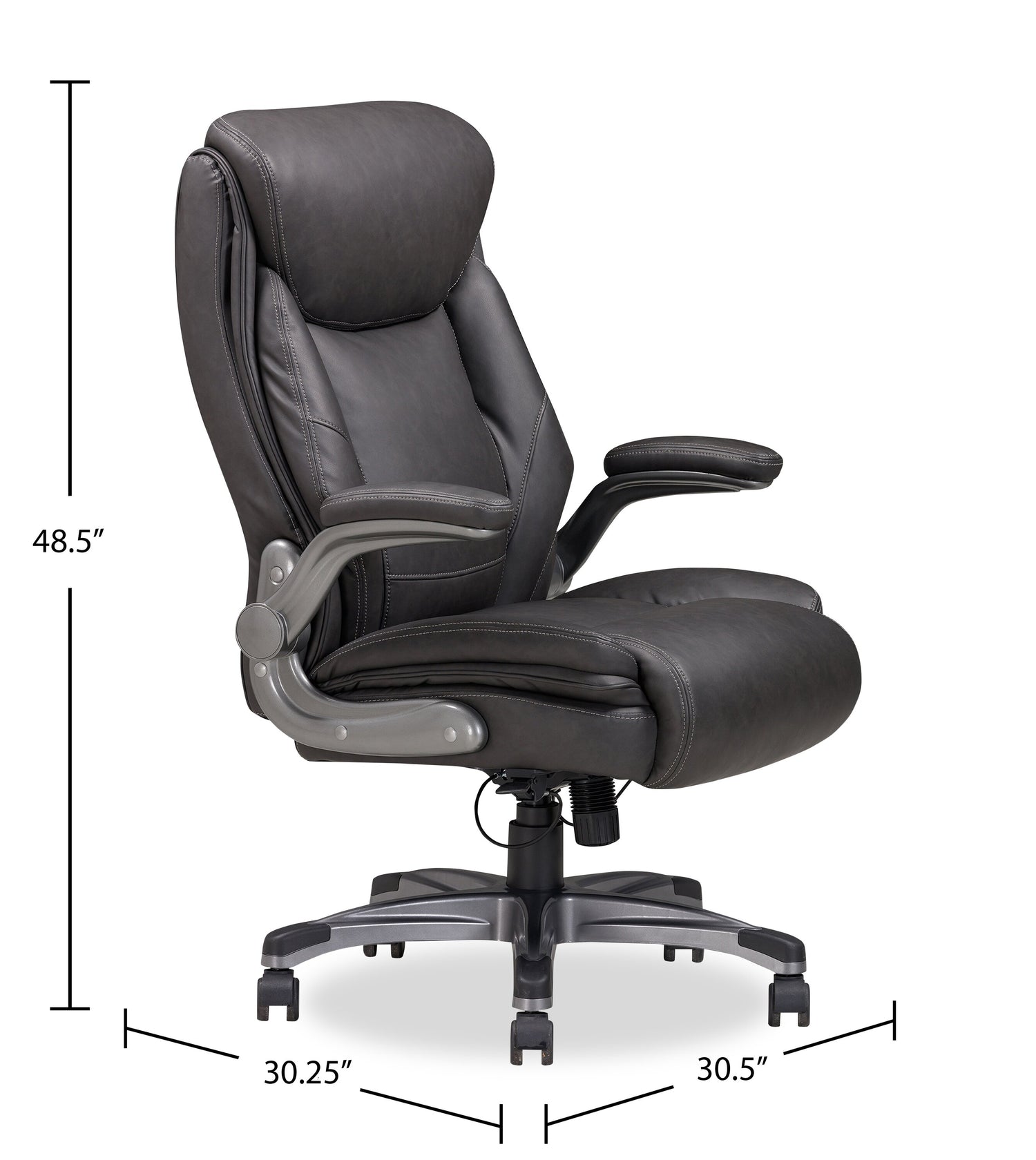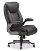Elevate your workspace with this Sealy Jonas commercial-grade office chair. The comfortable faux leather cover ensures you work in style and comfort, with armrests that can be easily flipped up or down to customize your seating experience to your liking. Plus, a gas lift height adjustment ensures you find the perfect ergonomic position, reducing strain and fatigue. A 360-degree swivel and casters allow for effortless and smooth mobility around your workspace. Redefine your workday and productivity in an executive chair that is a blend of sophistication and functionality.