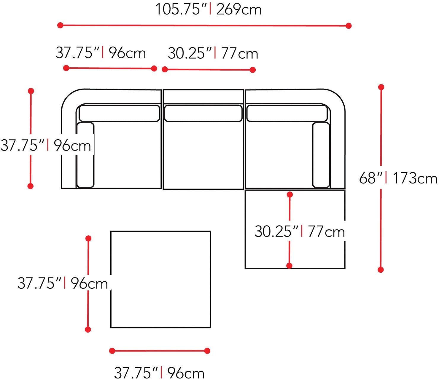 - Corner Seat (HxWxD): 29.5" x 37.8" x 37.8" (75 cm x 96 cm x 96 cm)