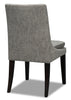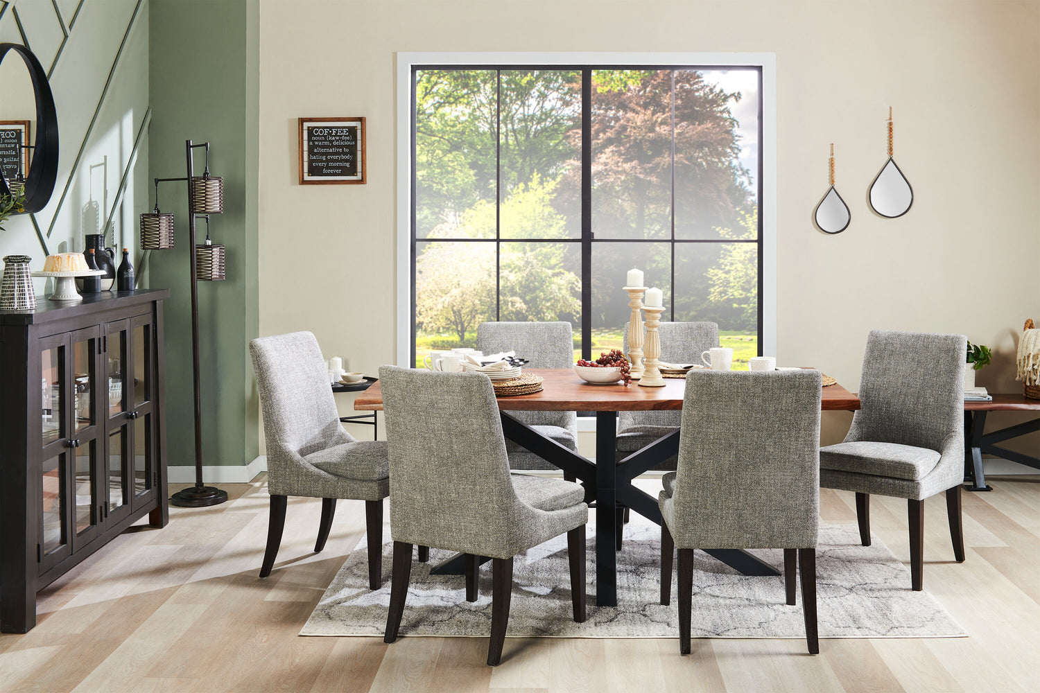 Treat yourself to a dining experience that's on the cutting edge of style with the Shilo grey dining chair. Plush grey polyester fabric wraps around high-density foam to create a seat you'll love to relax on. A curved back makes it easy to settle in through every course. Bring the Shilo home for dinner, and make it a meal you'll never forget.