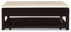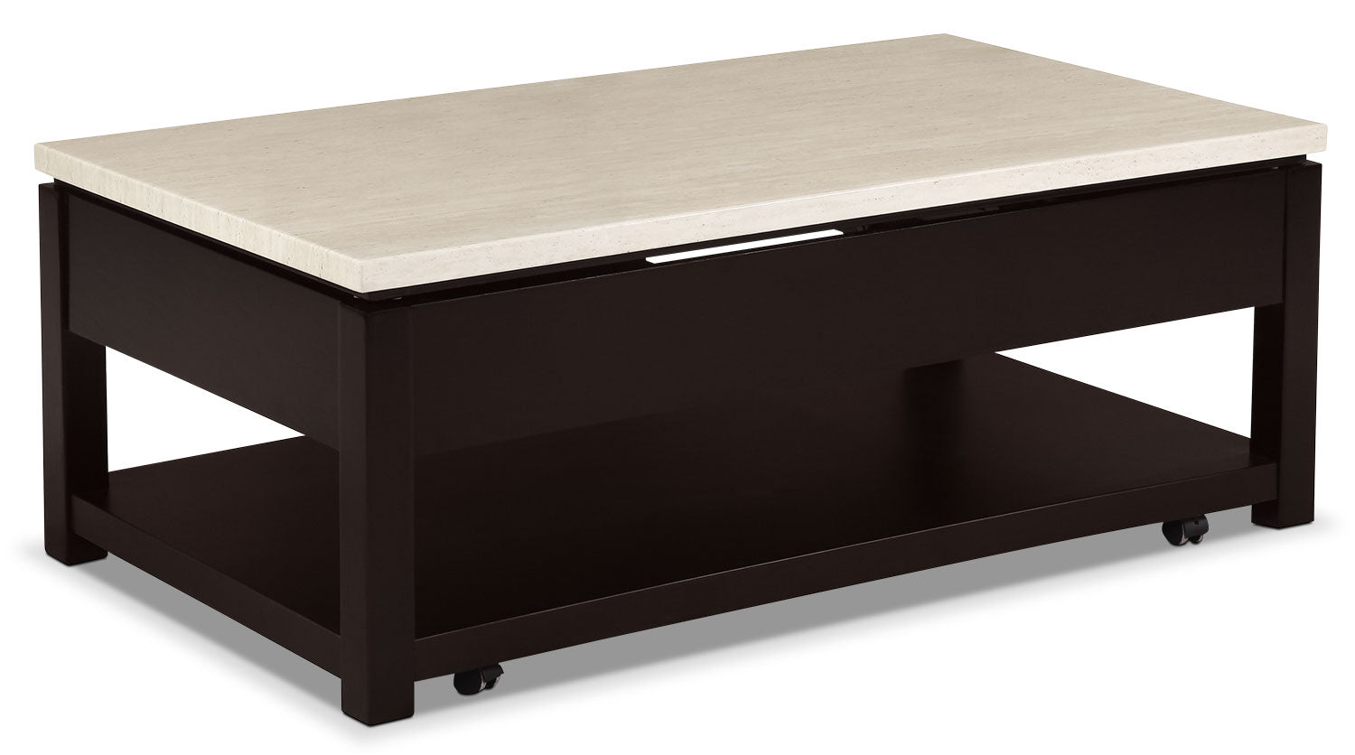 Enrich your home with this fabulous and functional Sicily coffee table. Finished in deep chocolate and featuring a faux-marble tabletop in creamy beige, this piece is designed to enhance your living space. Underneath the impressive lift-top you’ll find three spacious compartments for home essentials, while the table’s caster wheels make moving this piece convenient. Complete the look by pairing this piece with the matching end table (sold separately).