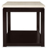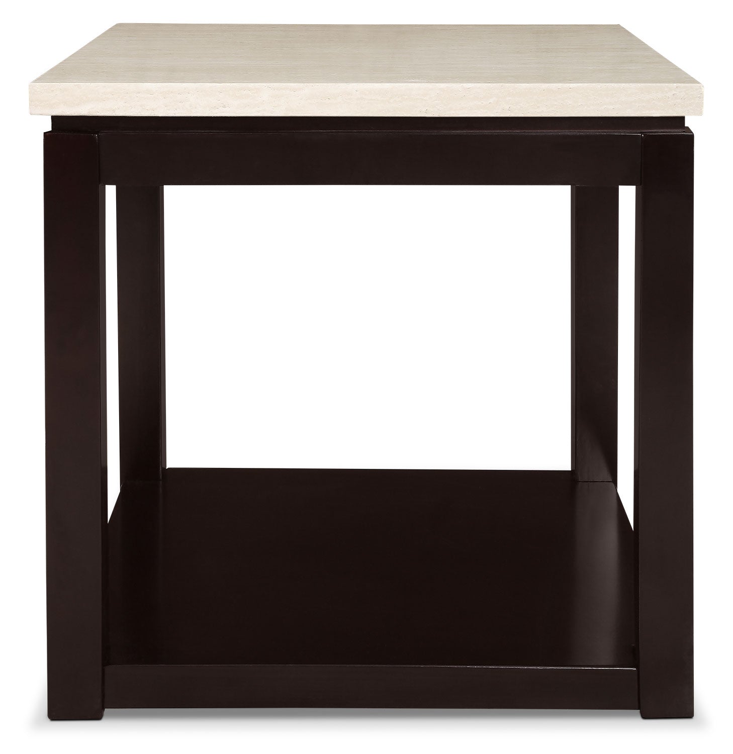 Enrich your home with this fabulous Sicily end table. Finished in deep chocolate and featuring a faux-marble tabletop in creamy beige, this piece is designed to enhance your living space. A generous lower shelf provides you with a second space to store books and magazines, or showcase decorative items. Complete the look by pairing this piece with the matching coffee table featuring a lift-top and caster wheels (sold separately).