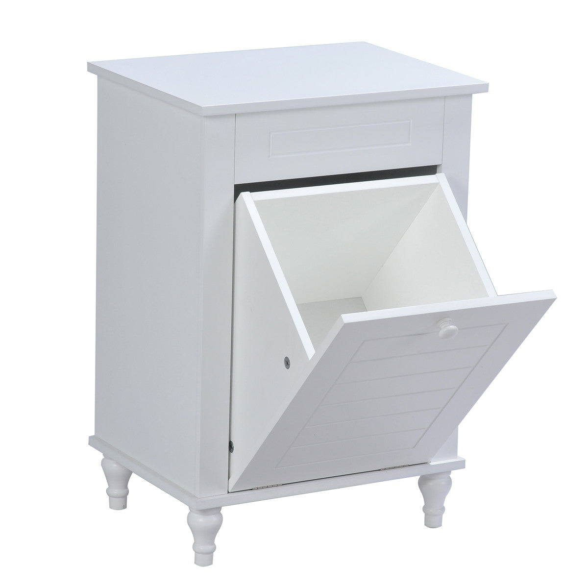 Surpassing the expectations of a laundry cabinet, this smart design slides open with a pull of the white knob and provides ample space for your laundry items. Comes with a spacy counter top for even more space. Measuring 16 x 12 x 23 ", this laundry cabinet fits nicely into your bathroom. A smooth white coating with solid wood carved legs and a durable MDF wood design will complement your space for a long time.