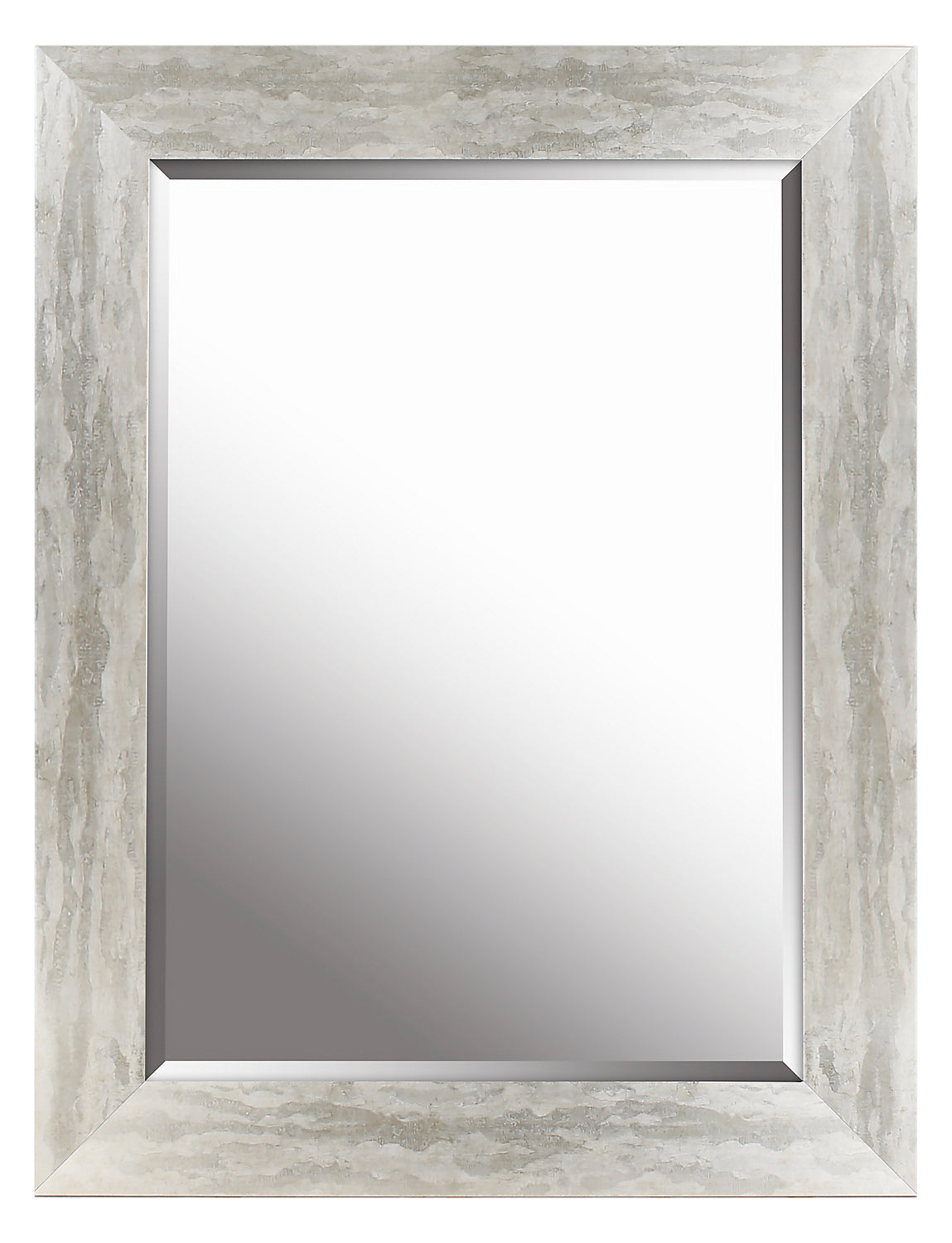 A bold, silver-coloured frame borders this alluring mirror for a striking look. Beveled glass brings an extra dimension with clean lines, lending an additional sense of depth. Hooks on the back allow this mirror to be hung both horizontally or vertically so you can arrange it however it works best in your room. Proudly made in Canada, this mirror brings a bright, shining look to your space.