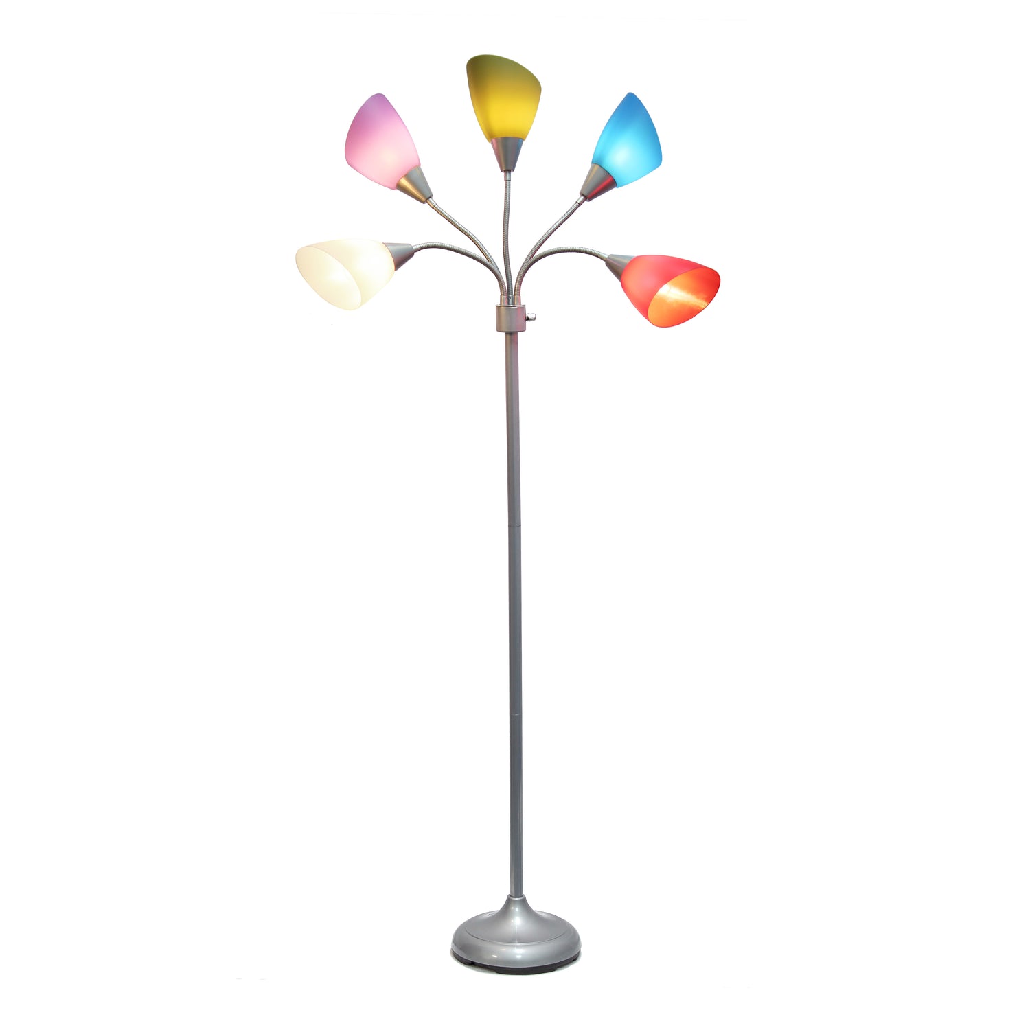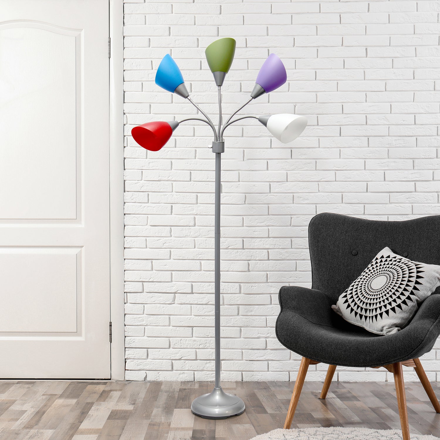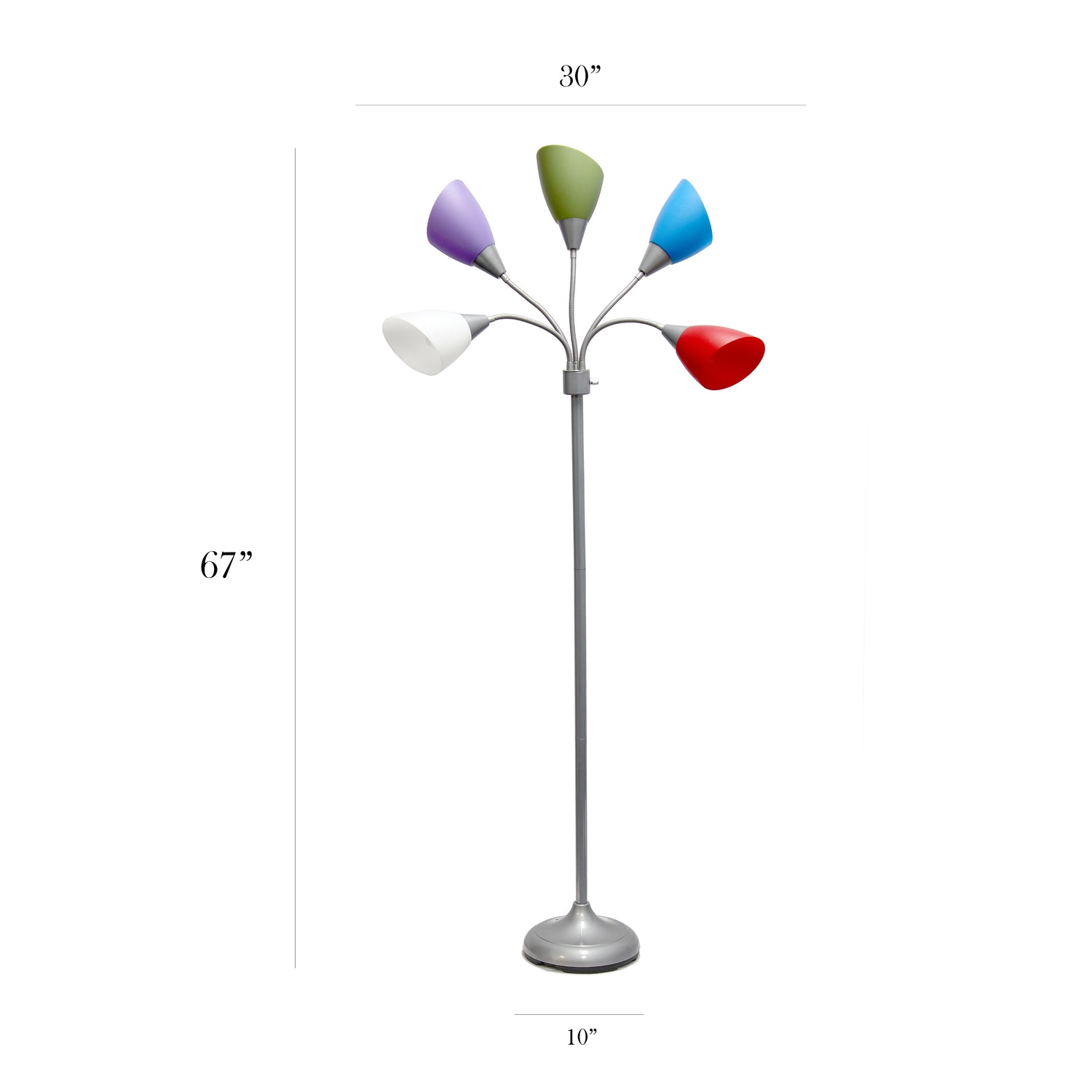 Simple Designs 67" Contemporary Multi-Head Medusa 5-Light Adjustable Gooseneck Floor Lamp with Primary Multi-Coloured Shades - Silver