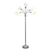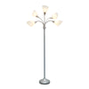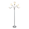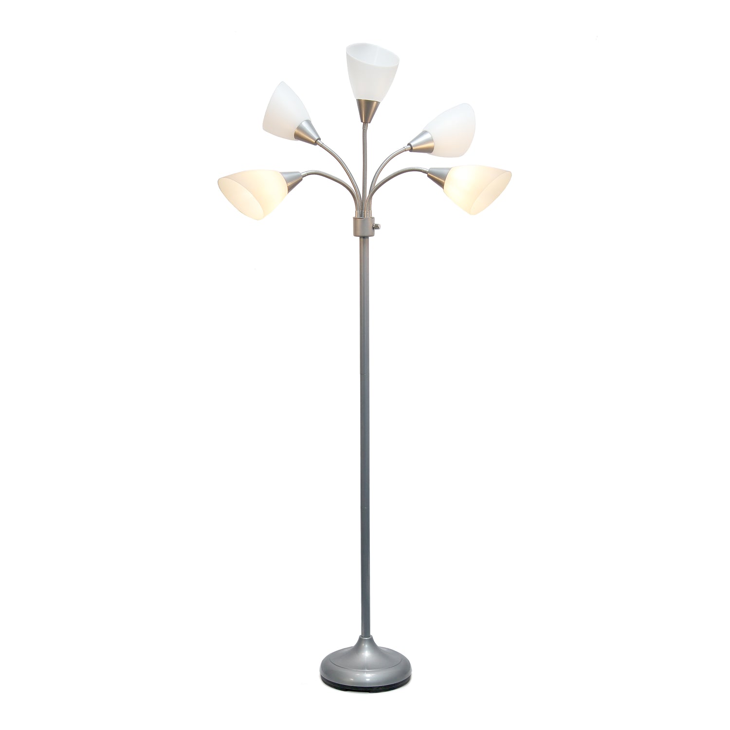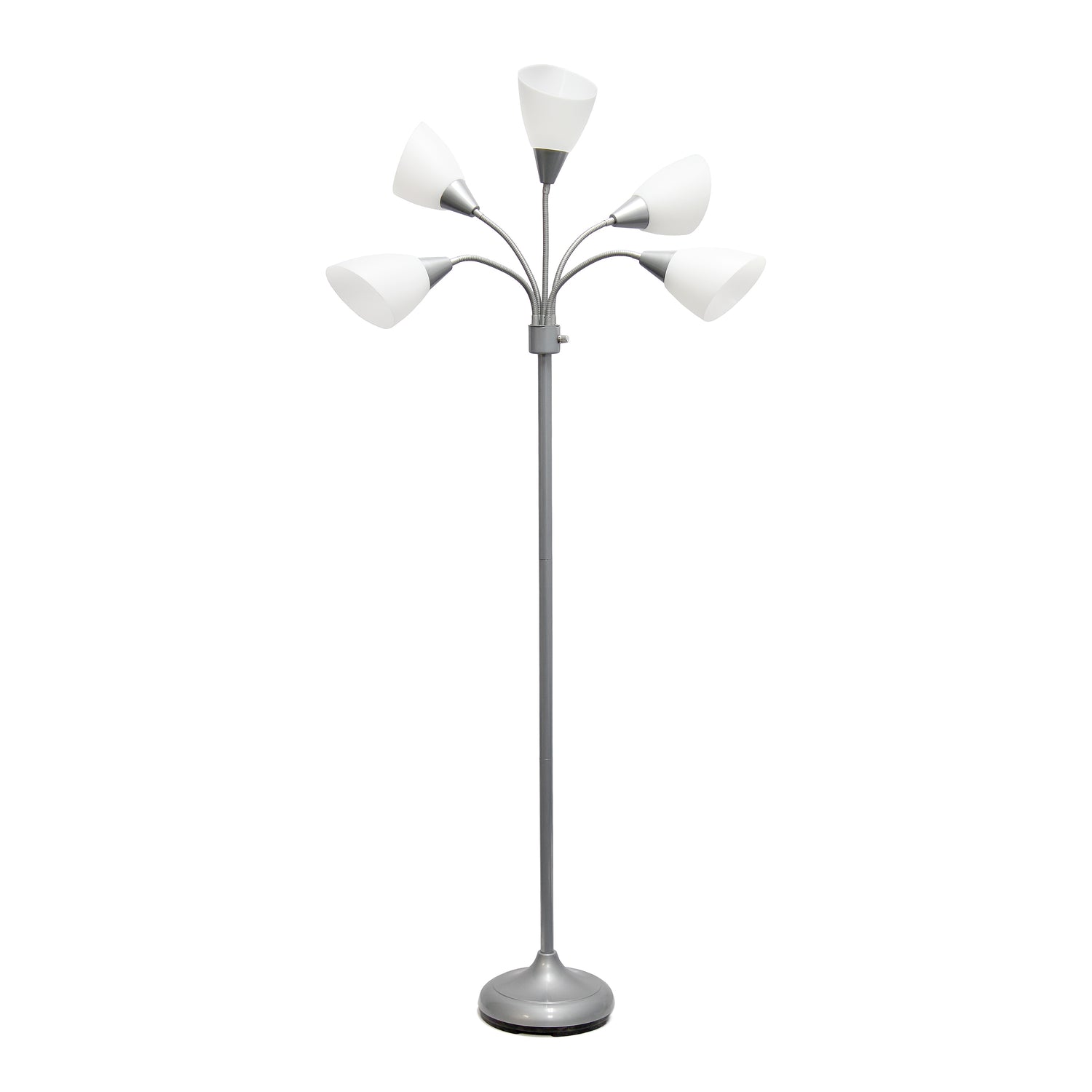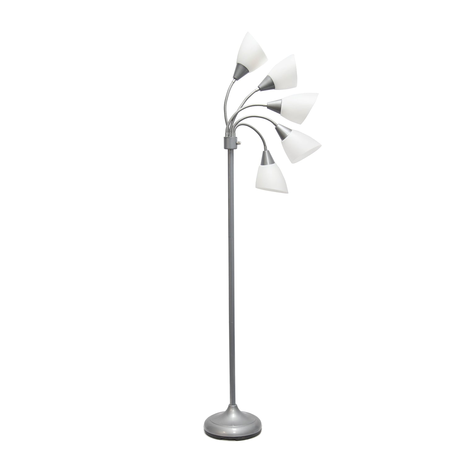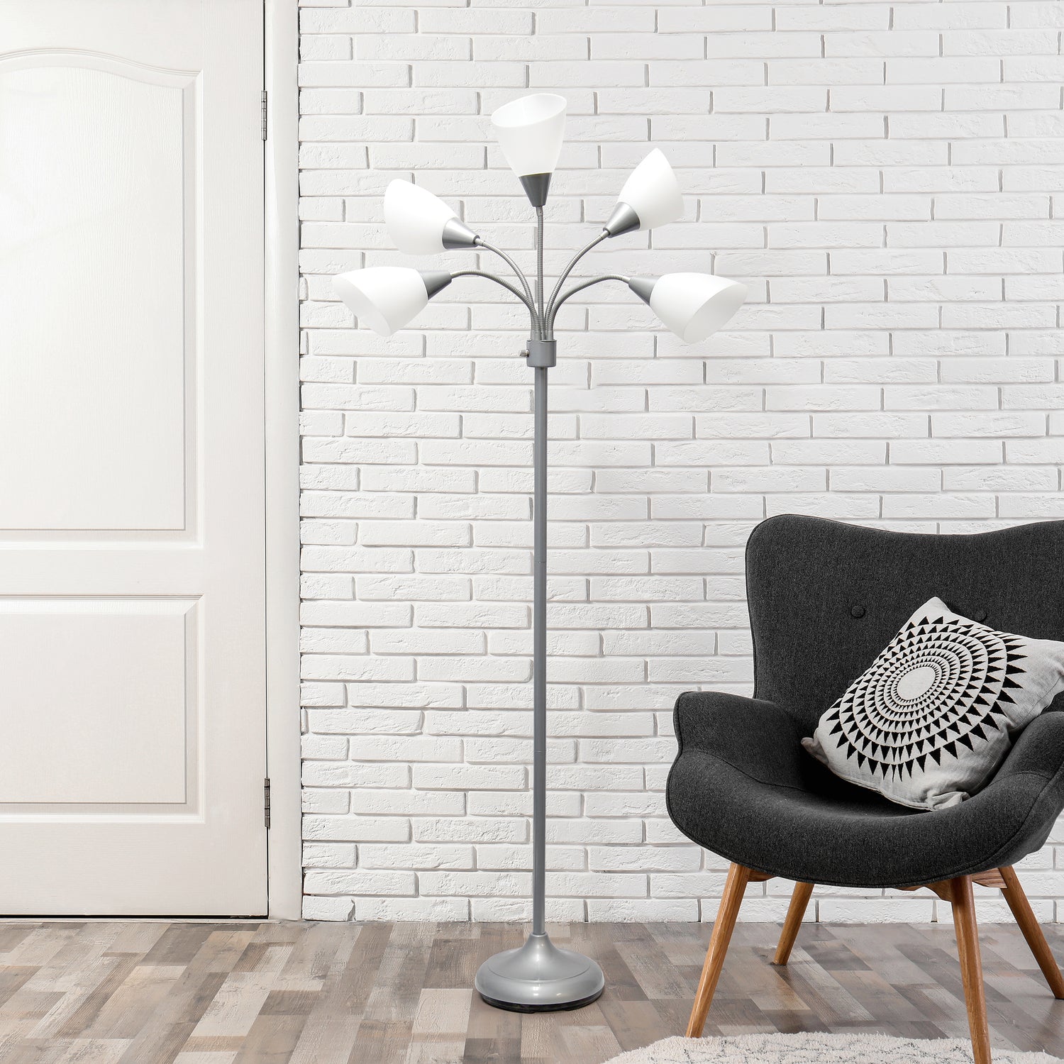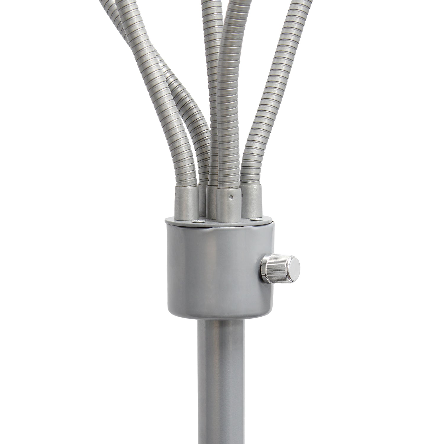 What a fun and trendy floor lamp this is! With a tall sturdy base below 5 flexible goosenecks extending to a plastic sloping shade, this metal lamp is ideal for environments requiring different directions of light as needed. The extensions are easy to maneuver to provide light up, down, sideways, etc. without having to move your lamp from its location. Check out all of the available base finish/shade colour options available to suit your needs.