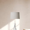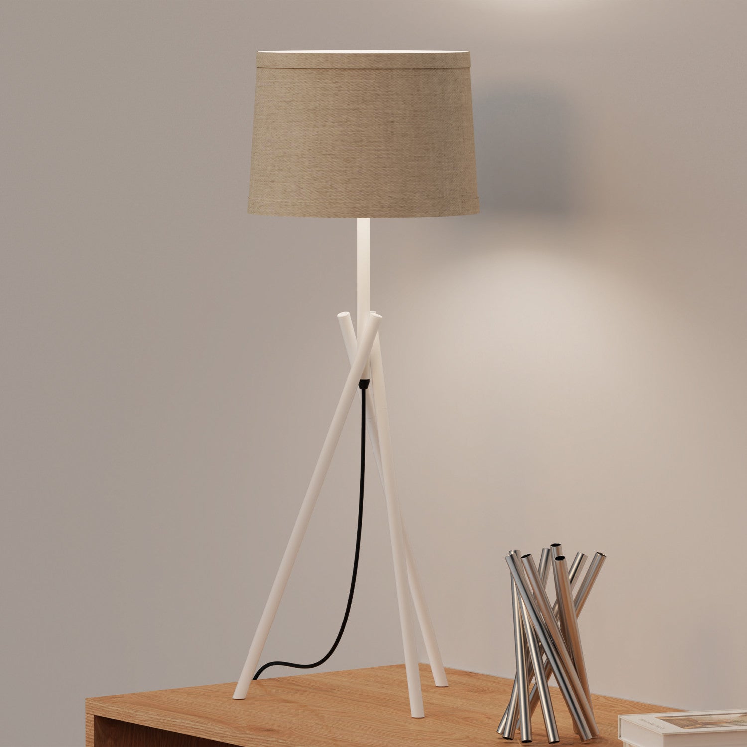 This lamp has minimalist charm with its slender crossed legs. Suitable for e26 bulbs, this lamp offers versatility in light selection. The elegant fabric shade provides a tranquil, ambient light, ideal for a desk or bedside table. Its compact stature and refined design make a sophisticated statement in any space.