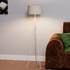 This floor lamp showcases elegant crossed legs that make a subtle yet stylish statement. Designed to accommodate an E26 bulb, it offers easy customization for your lighting needs, while the fabric shade provides a warm, ambient glow. Its tall and slender silhouette adds a touch of sophistication to any space.