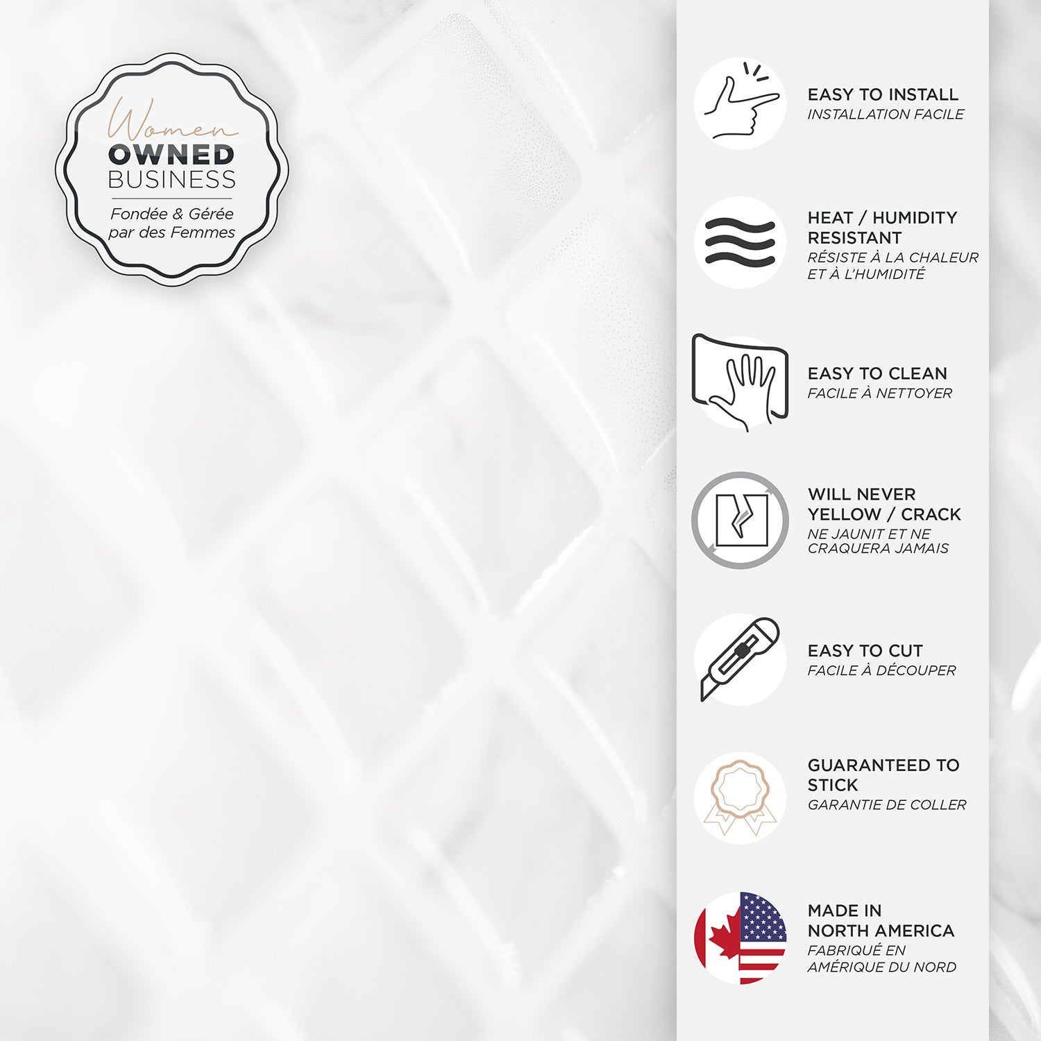 Smart Tiles are robust and resistant to heat from stovetops. They are also suitable as a backsplash in bathrooms (not suitable for inside the shower). Simplify your life with these innovative stick-on wall tiles specially designed for kitchen and bathroom backsplash areas. No more messy, time-consuming and nerve-wracking tile installations with grout or glue. Effortless DIY, easy-to-follow instructions included. Clean and dust-free installation. Smart Tiles are a work of art. Once Smart Tiles have entirely adhered to the surface, after 48 hours they will stick without peeling or cracking, for as long as you need them to.