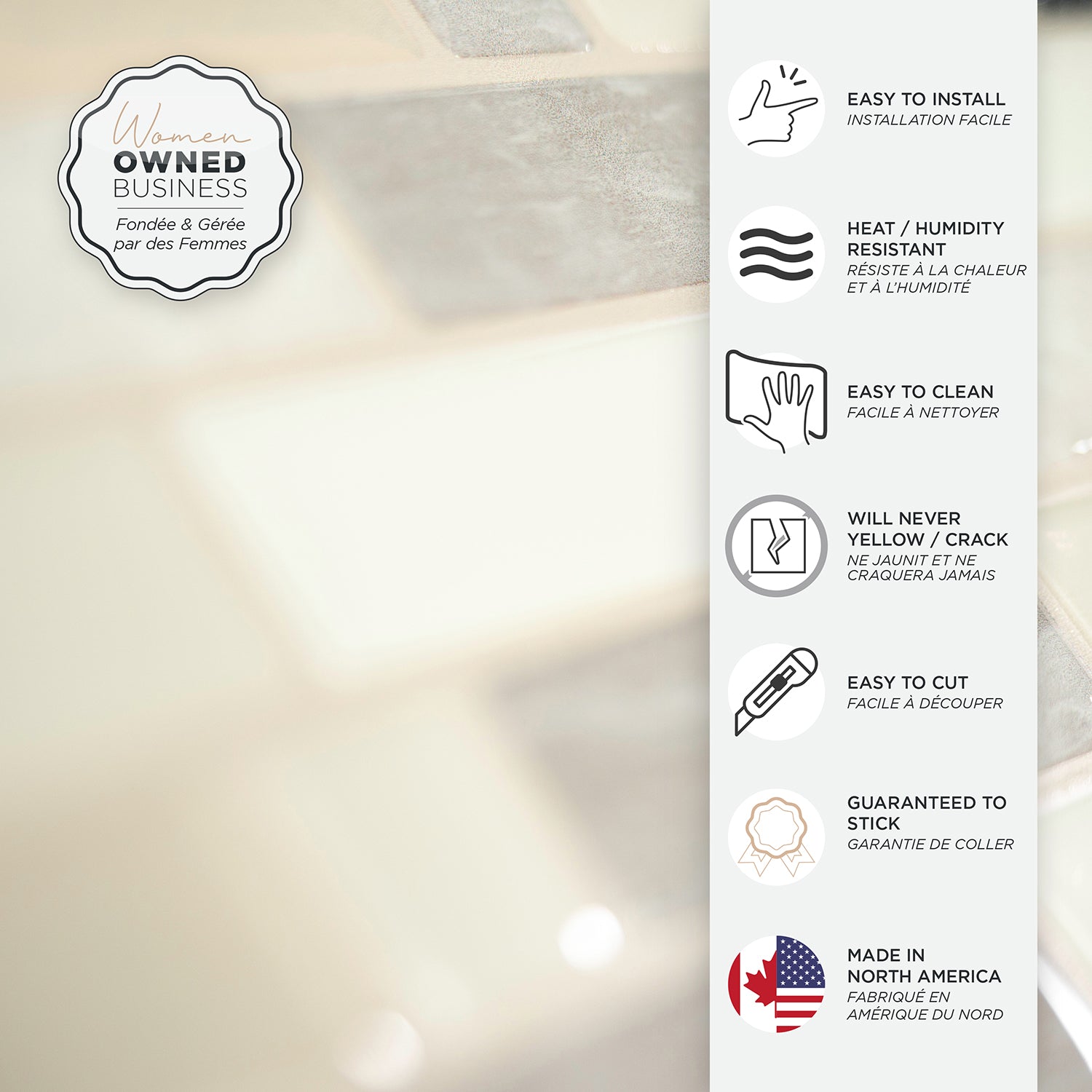 Smart Tiles are robust and resistant to heat from stovetops. They are also suitable as a backsplash in bathrooms (not suitable for inside the shower). Simplify your life with these innovative stick-on wall tiles specially designed for kitchen and bathroom backsplash areas. No more messy, time-consuming and nerve-wracking tile installations with grout or glue. Effortless DIY, easy-to-follow instructions included. Clean and dust-free installation. Smart Tiles are a work of art. Once Smart Tiles have entirely adhered to the surface, after 48 hours they will stick without peeling or cracking, for as long as you need them to.