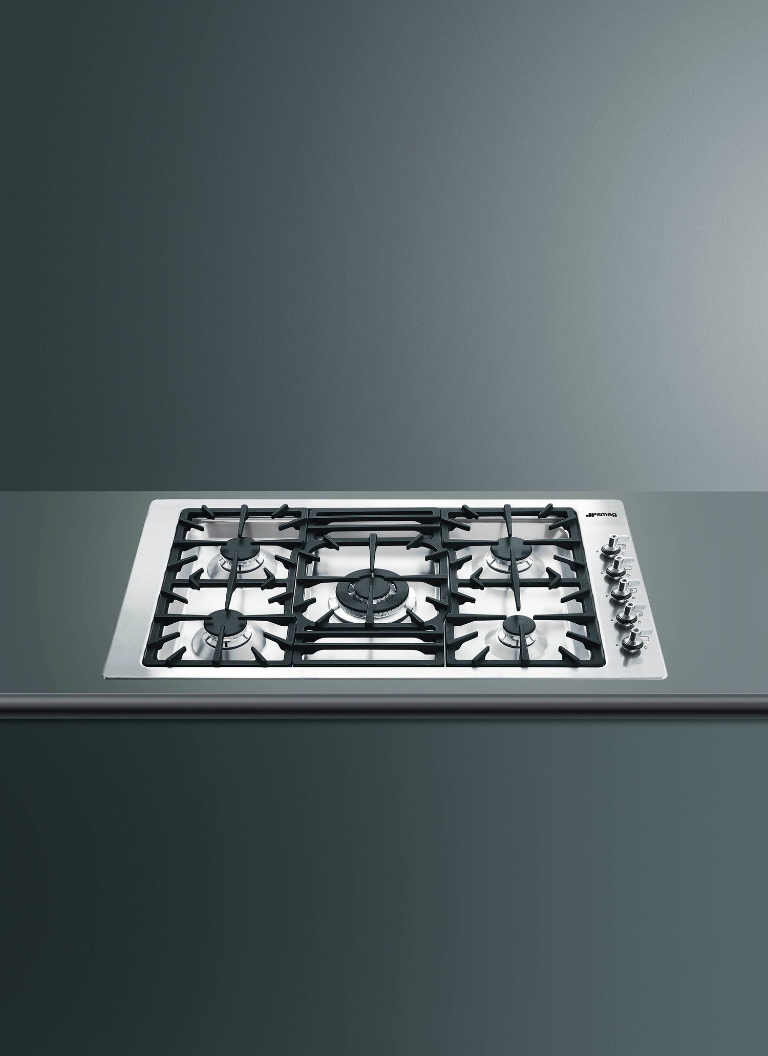 Add extra cooking power to your countertop with this Smeg gas cooktop. The powerful 13,700-BTU double inset super burner can quickly boil a pot of water or heat food whether frozen or fresh. Four additional burners — including three rapid burners — make cooking faster and easier. Plus, the continuous cast iron grates offer a heavy-duty cooking surface that can withstand high heat for years to come. An LP gas conversion kit comes included, while the extra-wide stainless steel frame provides excellent countertop protection.