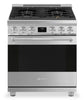 This dual fuel range from Smeg features four sealed burners for extra cooking space, offering up to 78,000 BTUs of power. Continuous cast iron grates on the cooktop ensure easy transport of pots and pans from burner to burner. Plus, enjoy multiple cooking functions such as static, fan-assisted, True European Convection and more. Not to mention, the robust knurled handles and SoftClose oven door provide a premium feel, while the EverClean enamel oven cavity and black enamel cooktop make cleaning a breeze.