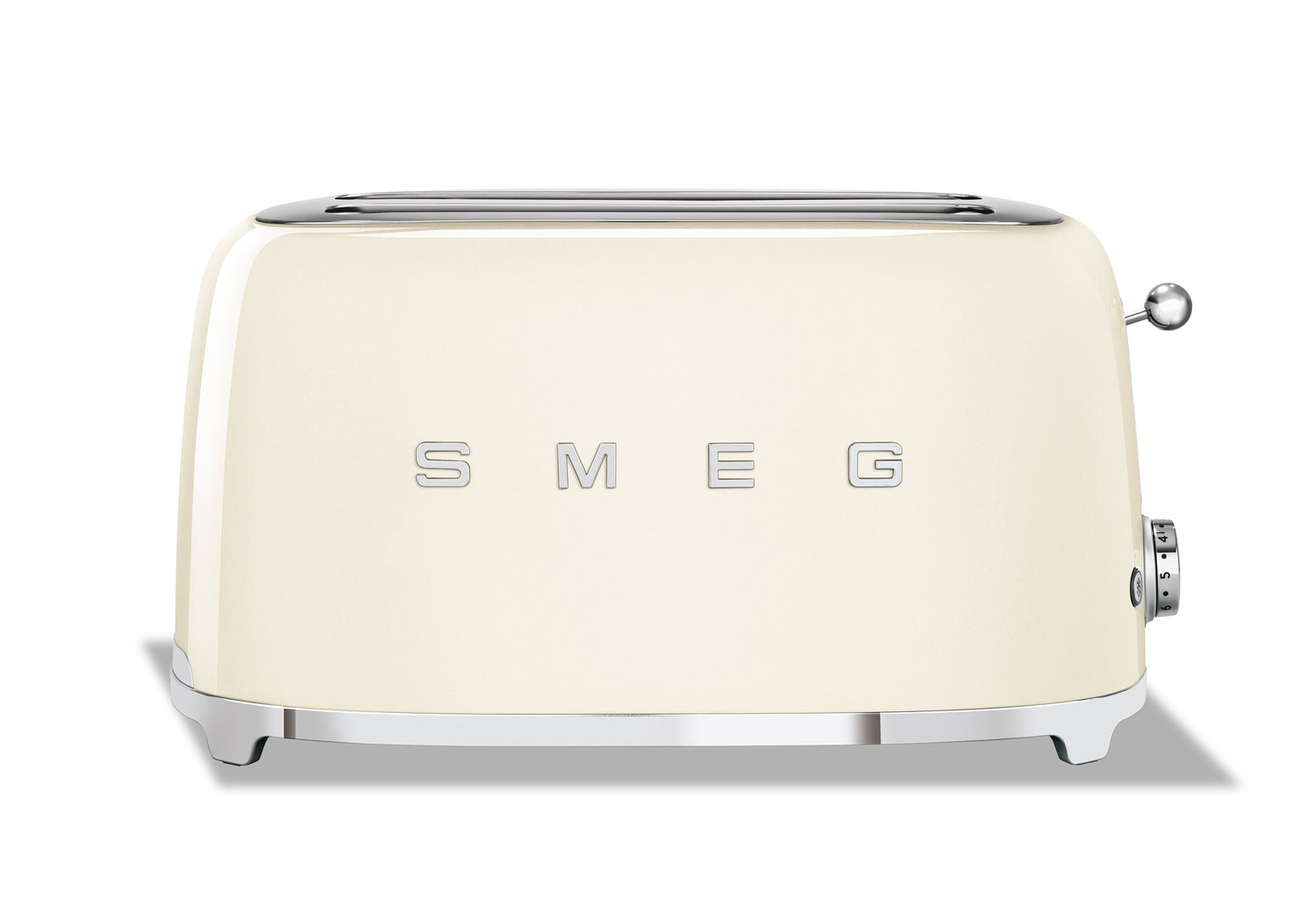 Enjoy sliced bread, thick farmhouse loaves, artisan breads, baguettes and bagels each toasted just the way you want with this Smeg long-slot four-slice toaster. Select between six different browning levels, toast only one side with the bagel function, or simply warm or defrost your bread. Plus, take in the stylish retro design as it sits on your countertop.