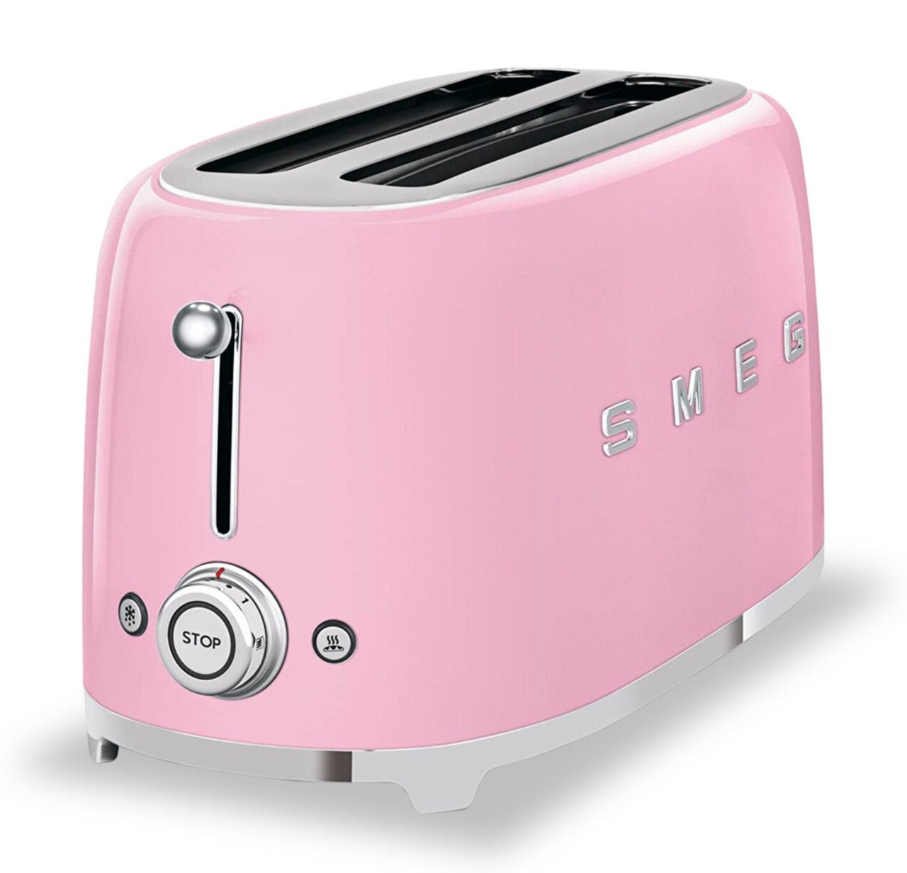 Enjoy sliced bread, thick farmhouse loaves, artisan breads, baguettes and bagels each toasted just the way you want with this Smeg long-slot four-slice toaster. Select between six different browning levels, toast only one side with the bagel function, or simply warm or defrost your bread. Plus, take in the stylish retro design as it sits on your countertop.
