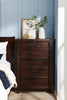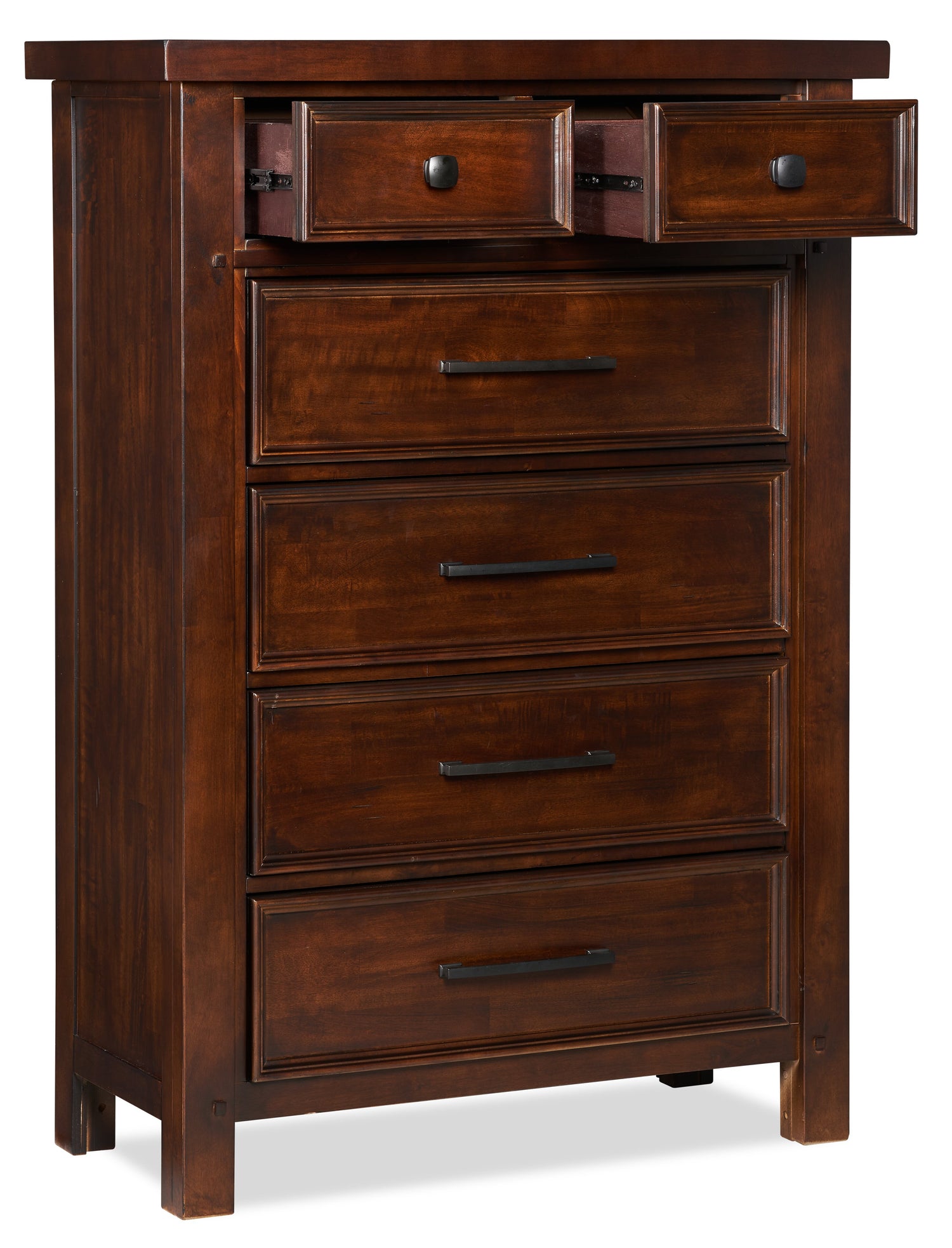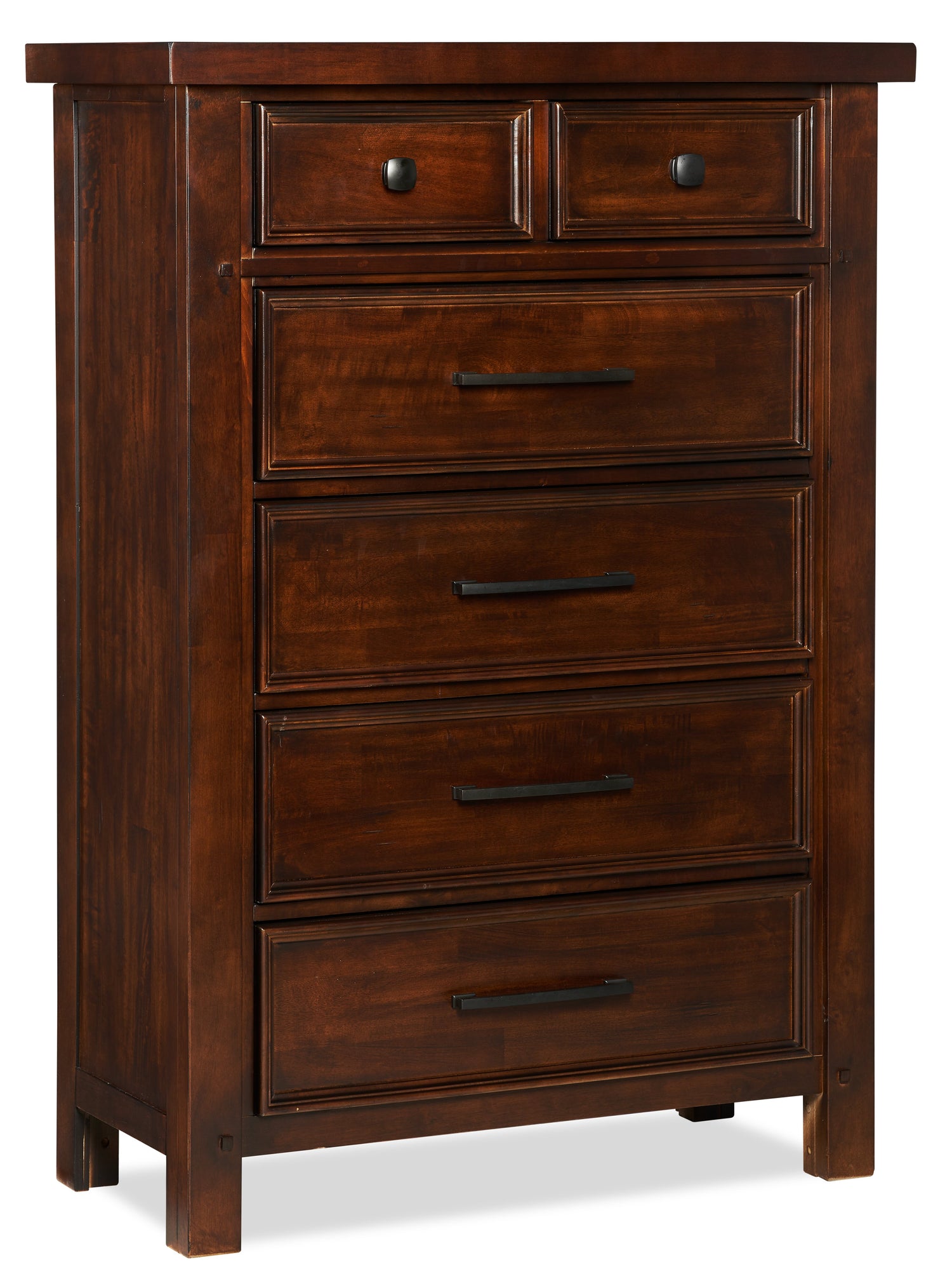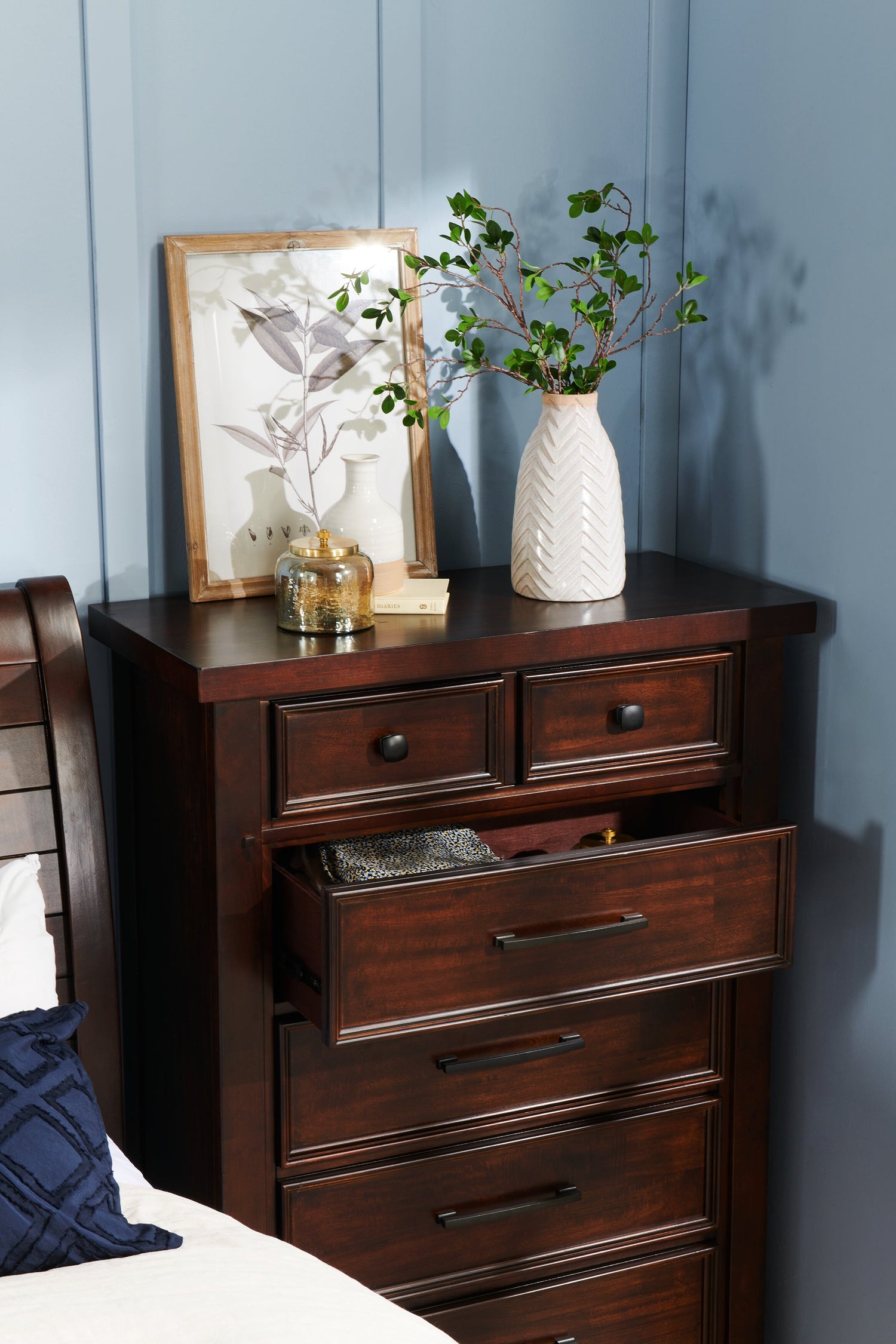 Enjoy the look of a traditional bedroom with this beautiful Sonoma chest. Made with durable and eco-friendly rubberwood, this chest is finished in a lovely burnished mango for that down-home country feel. Dark, antiqued pewter hardware makes for a stunning complement to the finish, and the raised wood detailing on the drawers adds a gorgeous finishing touch to the traditional look of this chest.