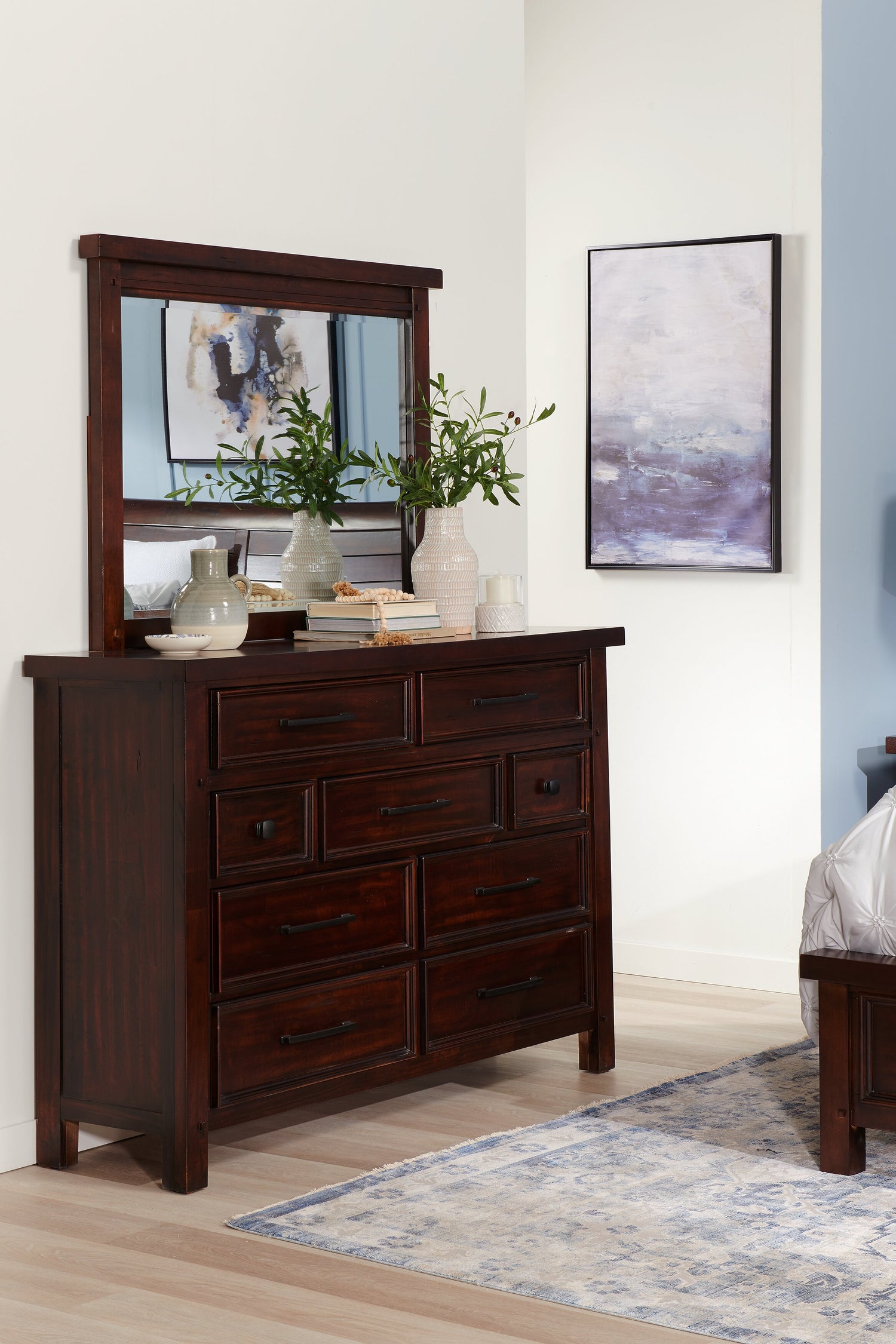 Enjoy the look of a traditional bedroom with this beautiful Sonoma mirror. Made with durable and eco-friendly rubberwood, this mirror is finished in a lovely burnished mango for that down-home country feel. The raised wood detailing on the mirror frame adds a gorgeous finishing touch to this bedroom mirror frame.