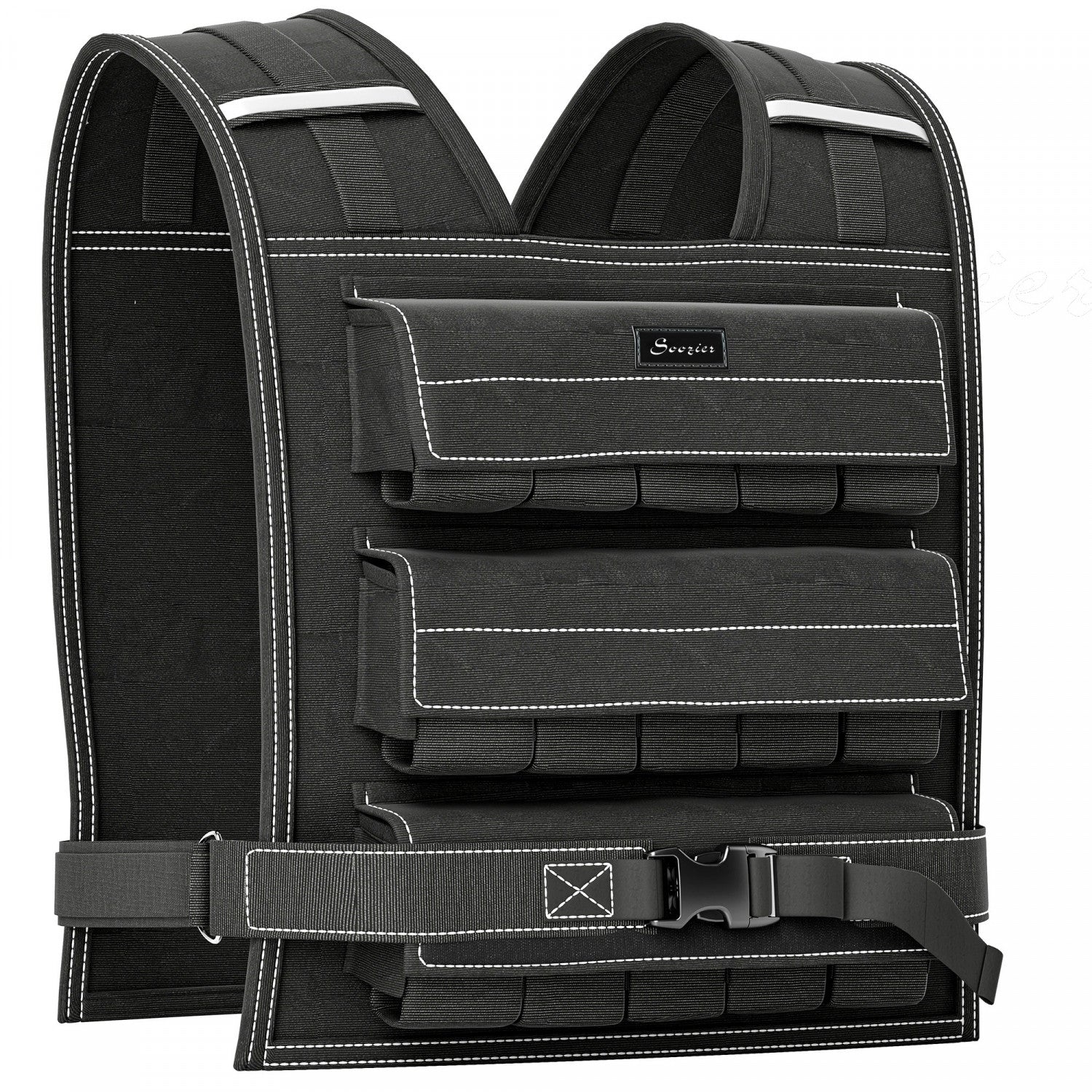 | Key Features | - Includes 15 x 2 lb (0.95 kg) removable weight bags for adjustable weight; - Strap with hook-and-loop fasteners fits snugly for all genders; - Even weight distribution across the torso enhances comfort during workouts; - Wider and thicker shoulder straps help prevent injury; - Reflective strips increase visibility for safer nighttime exercise; - Reinforced 600D Oxford cloth ensures long-lasting wear resistance; |