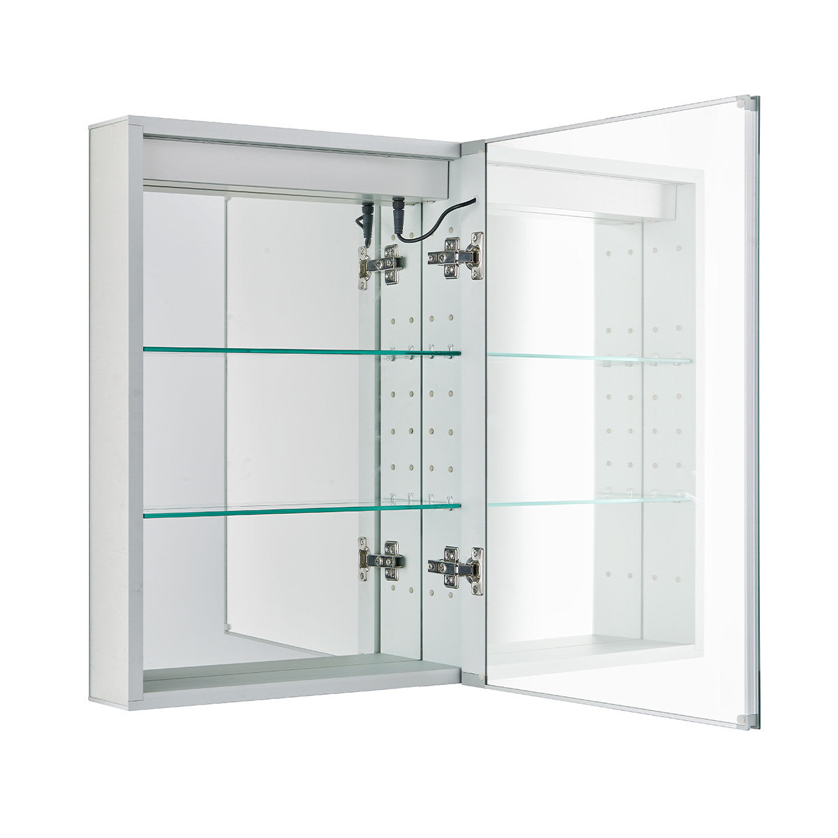 With sleek mirrored surface inside and outside, this 20 x 28 in medicine cabinet is not just a place to store your comprehensive collection of toothpaste, flosses, soaps, and remedies, medicine cabinets also offer a spot to enhance your bathroom looks and style. This piece is designed to be mounted directly onto your wall, so installation is required. Interior glass shelves are adjustable to accommodate your toiletries. Mirror on front door includes soft close hinges allows the door to close slowly avoiding noise while force closing of the door. The mirror on the front door has 1/2-inch wide LED light and 1/2-inch bevel edges makes your bathroom more attractive.