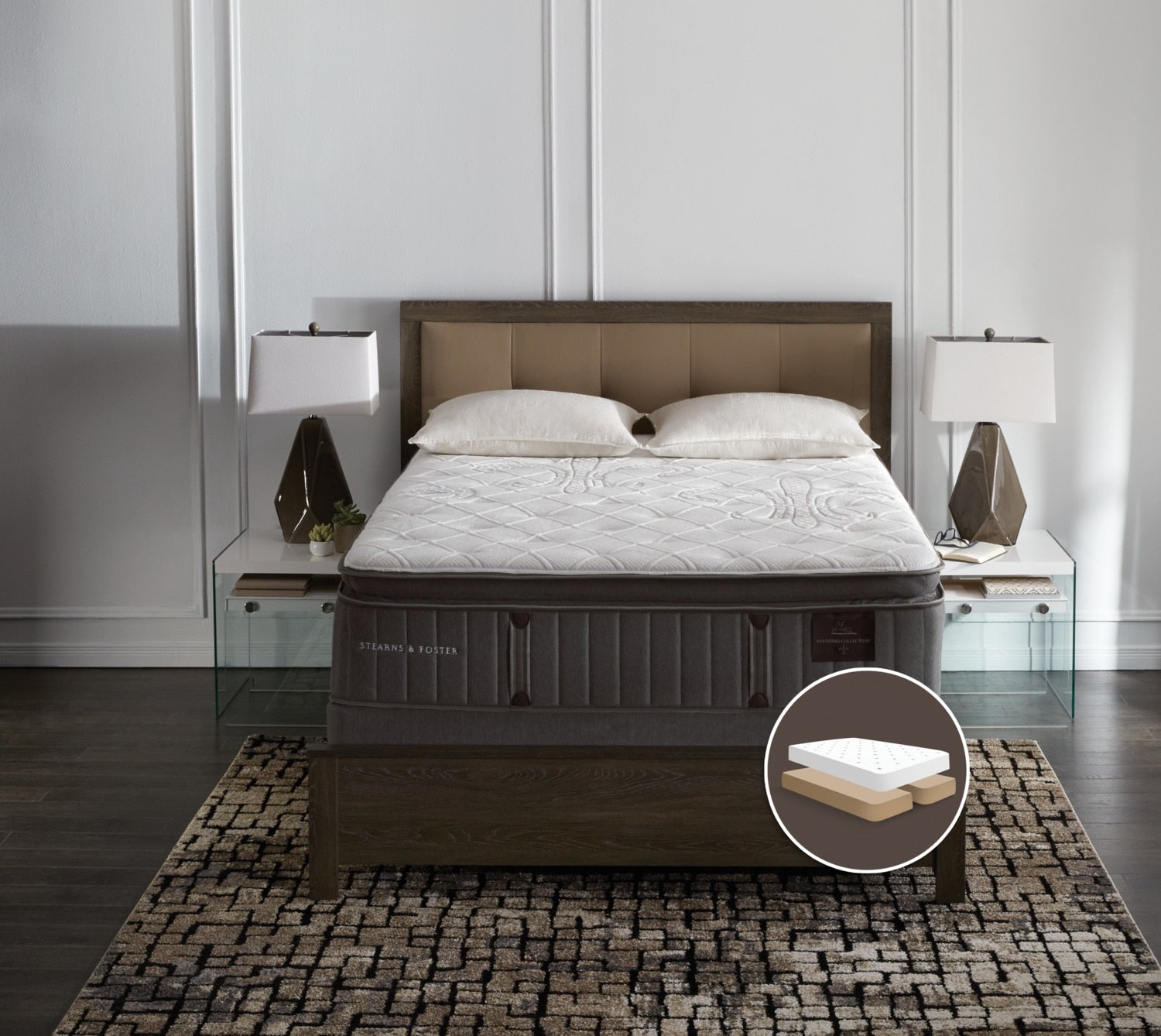 You'll feel like you're resting on a fluffy cloud when you lie down on this Princedale pillow-top split queen mattress set from Stearns & Foster. Based on a layer of coil-in-coil pocket springs, this bed offers adaptable support from your head to your toes. Meanwhile, the PrimaVent™ system allows heat to escape out the mattress' edge, which is reinforced by miniature coils so you can feel safe relaxing on the bed's surface. With gel memory and gel high-density (HD) foams ready to cradle you, falling asleep won't be a problem.