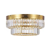 The Stella Collection double tier flushmount features dazzling crystals which are illuminated by bright LED. The frame is finished in a rich brushed brass. Due to its LED light source it is energy efficient. This model is dimmable and back with a 5 year warranty on the LED.