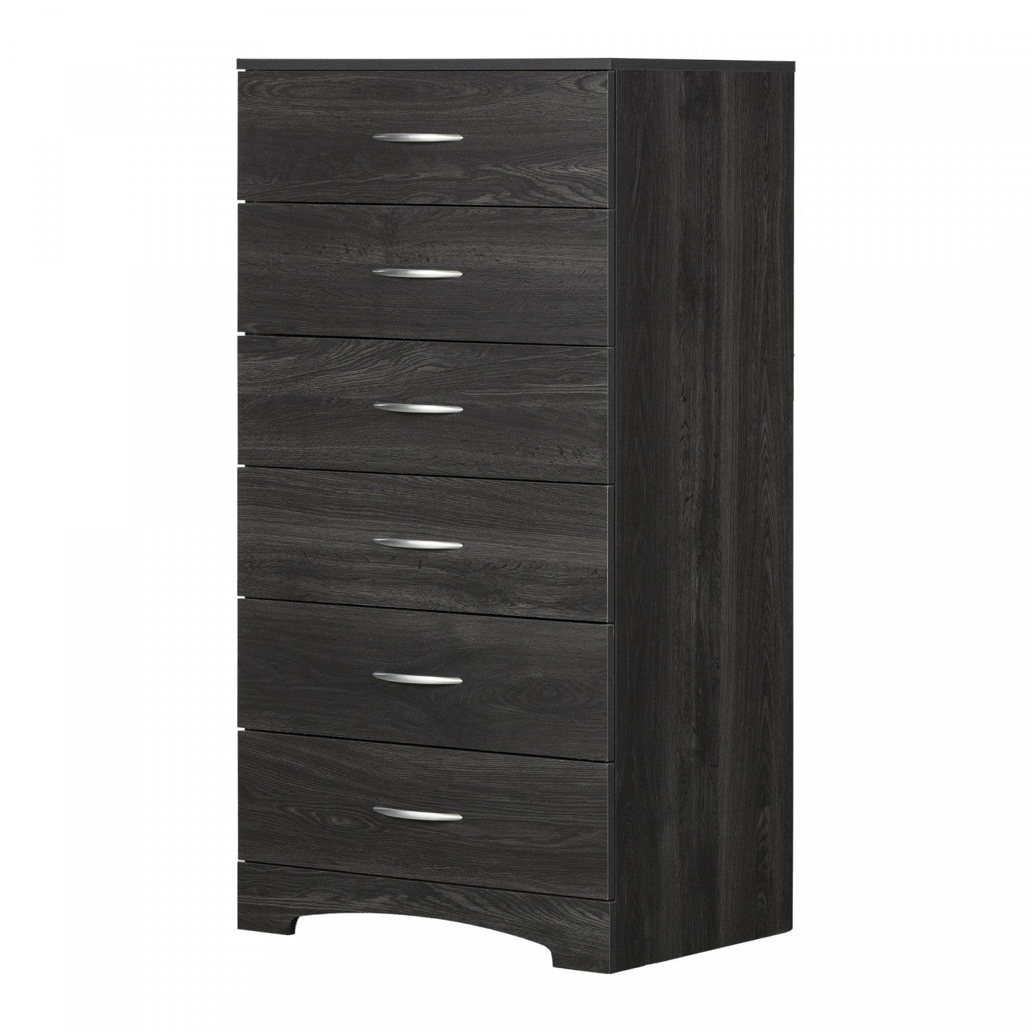 Contemporary lines and finish. This step one 6-drawer dresser has a timeless look and blends in easily with any decor. The contemporary lines are softened by the curved kick plate, and metal handles add character and value to the furniture. The neutral, modern style makes it suitable for men’s or women’s, providing plenty of storage space in this attractive piece of furniture. Practical storage and organization this bedroom furniture collection was designed just for tighter spaces! Featuring 6 practical drawers with metal handles, the dresser provides plenty of room for clothes, linens or general storage. The drawer slides are made of metal and include dampers and catches.