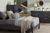 A trendy chest with a contemporary-modern look. This modern style dresser gives you functional storage and very simple lines… so you can now get that sleek look for your bedroom. Six drawers for clothes drawers are an easy way to see what’s in the chest – and putting things away is simple, so it doesn’t look like your clothes were left all over the room. A six drawer dresser is the ideal companion piece to an armoire. Because the slides are made of metal, each drawer can hold up to 25 pounds. Easy to access storage another very useful feature of this chest – aside from the handy drawers – is the large top surface. Since the piece itself is lower, the top is within easy reach and large enough to hold lots of things. It’s a favorite place for decorative items and those body care products you use all the time.