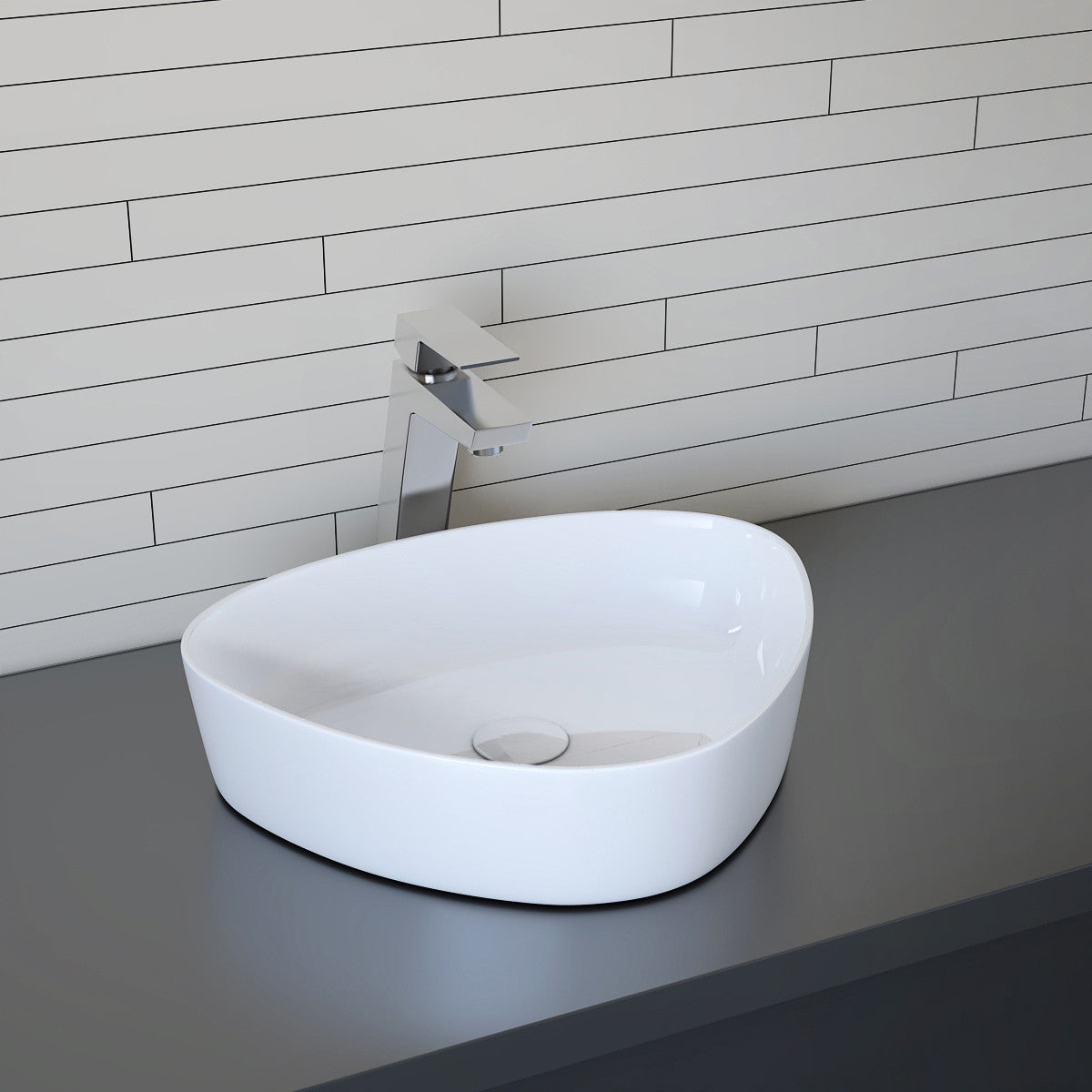 This unique above-the-counter ceramic art basin is a piece of art that will transform your bathroom and will quickly become the center of attraction. The basin has a glossy white finish that combines design and practicality very well.Recommended for all contemporary bathrooms.
