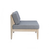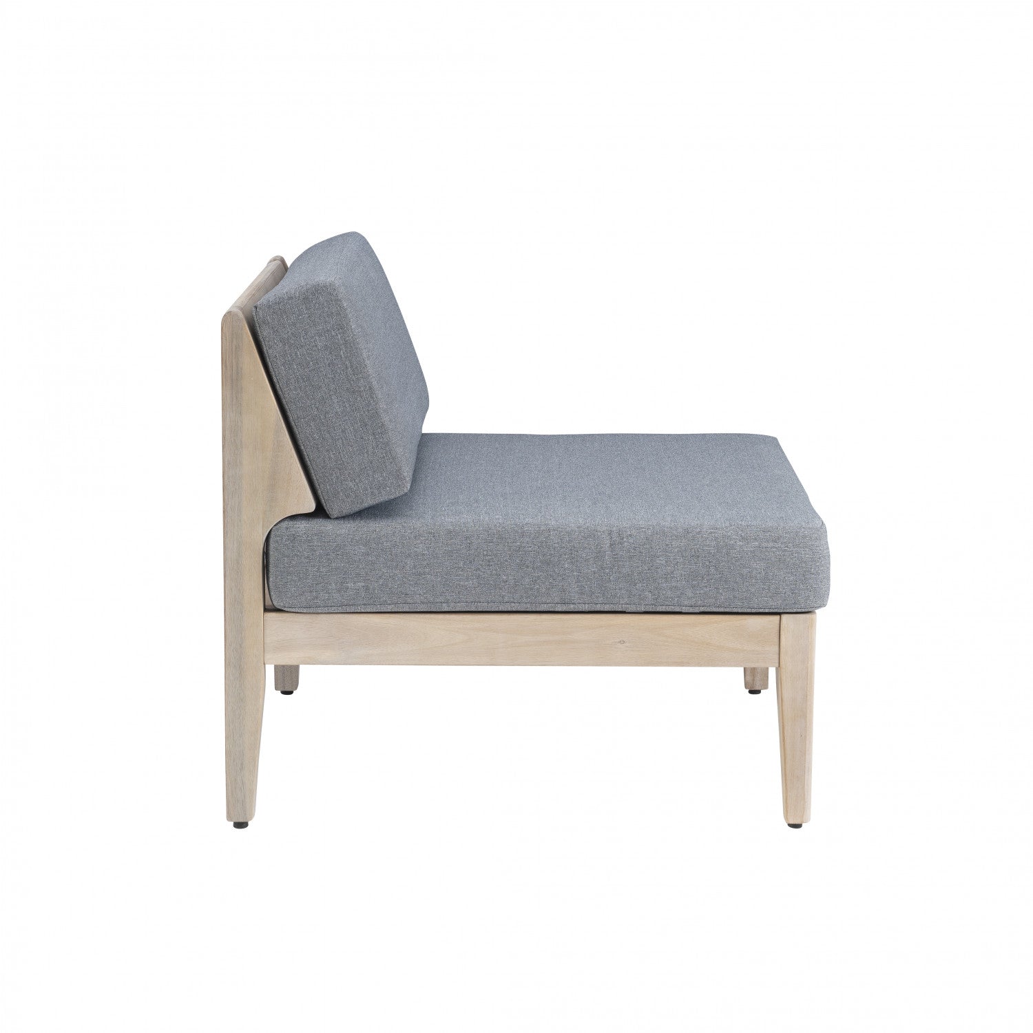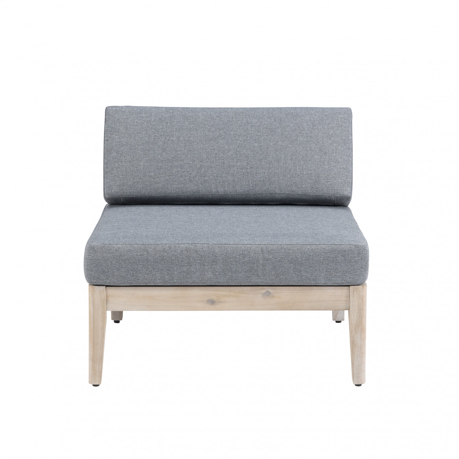 Modular, use alone, in pairs to create a love seat, or with matching ottoman pieces to create your own oasis sofa sectional set. Luxurious contemporary styling provides comfort inside as well as outside on your patio. Natural finished acacia wood coordinates with grey performance fabric cushions that comfortably stand up to the weather.