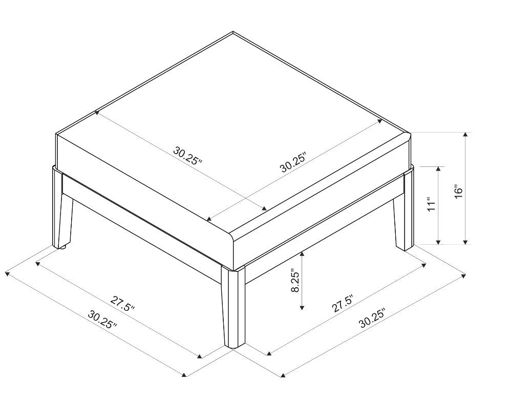 Width: 30.25" (76.8 cm) Height: 11" (27.9 cm) Depth: 30.25" (76.8 cm)