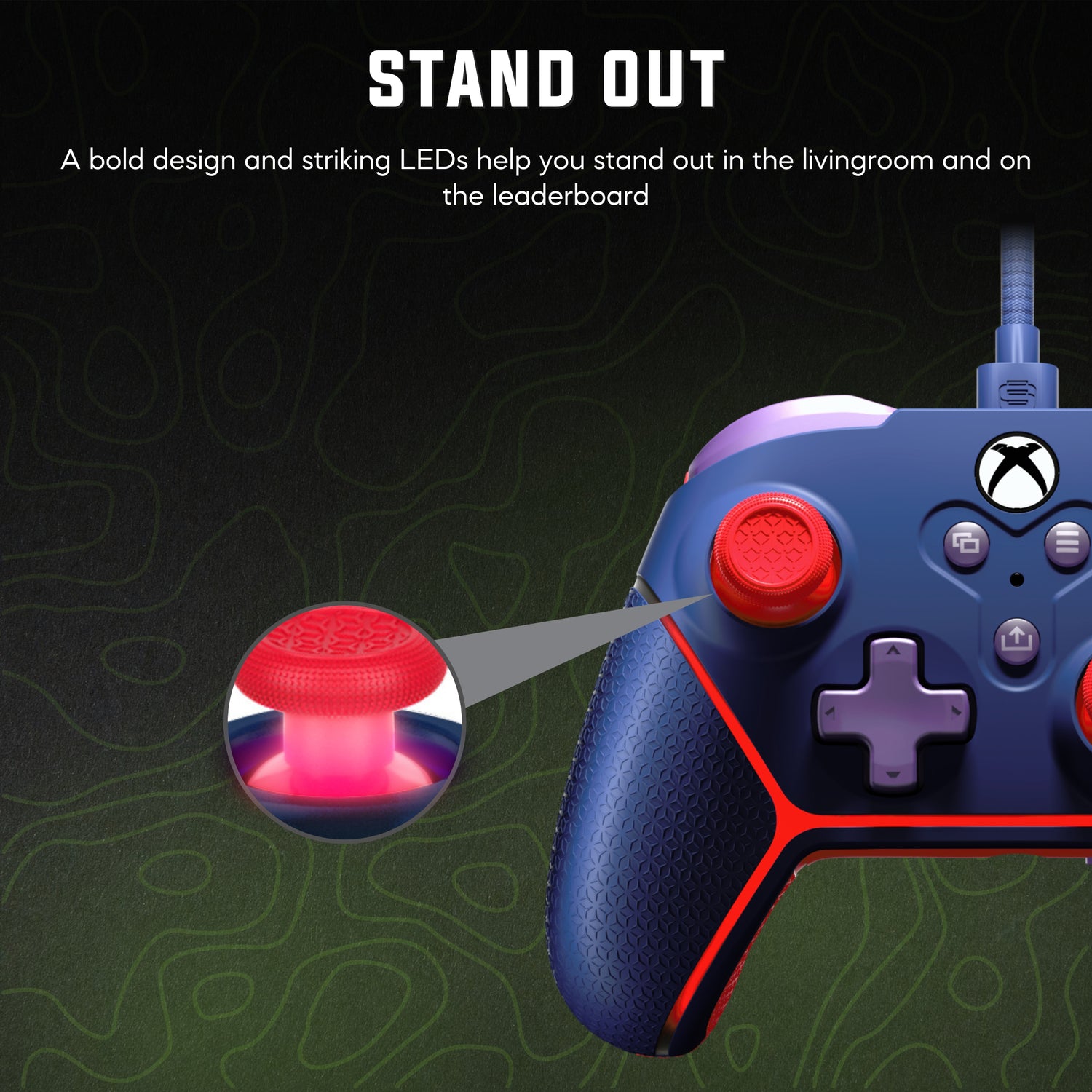 The Livewire Microwatt Controller offers full sized functionality in a 20% smaller size. Designed for younger gamers, the custom grip texture on the handles, triggers, and thumbsticks keeps you on target. The LED light bar and thumbstick underglow highlight your skills and can be adjusted to match your style. Dual rumble motors enhance your experience, and a 3.5mm audio port makes it easy to chat with friends. Equipped with a detachable 10-foot braided cable, the Microwatt is the perfect travel buddy, providing full functionality in a compact size.