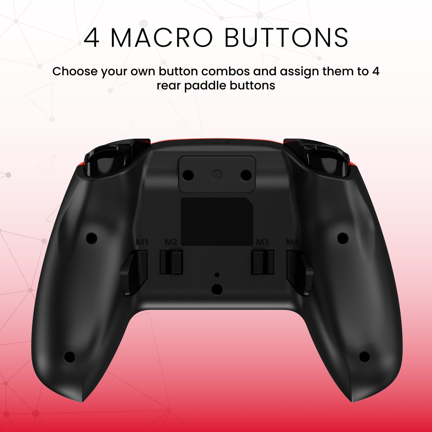 Enhance your gameplay with the Surge SwitchPad wireless pro controller for the Nintendo Switch. The classic style and lightweight design provide continued comfort with undercover features to help you play like a pro. Four programmable macro buttons let you pick your own button combinations and assign them to ergonomic paddle buttons on the back of your switchpad, giving you increased performance and personalized controls in your favourite games.