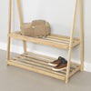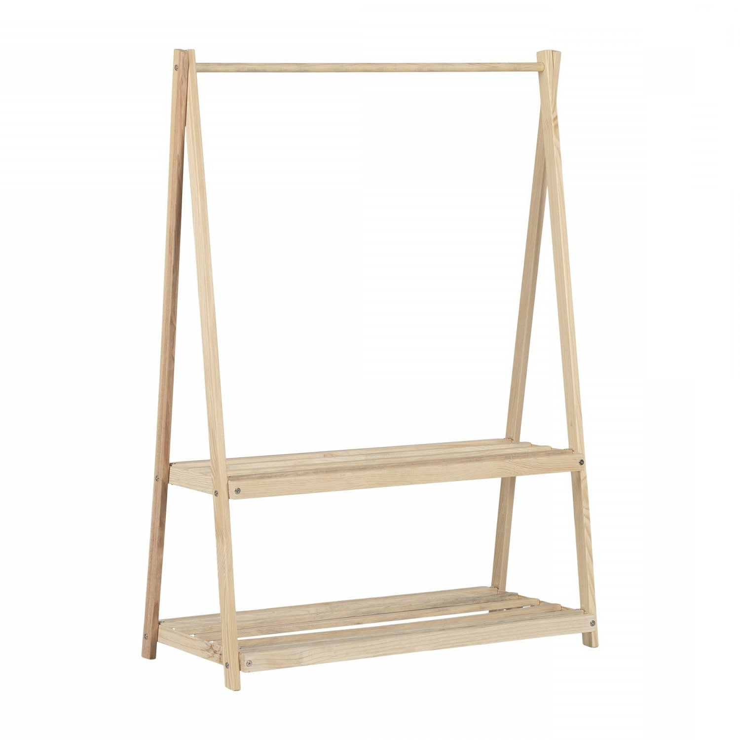 Convenient and easy to use, this wooden clothes rack with storage shelves allows your child to assert their taste and be independent. They can hang their favorite clothes on the bar and place their shoes on the two shelves that can each hold up to 25 lb. This minimalist clothing rack is perfect for kids ages 7 to 12. Thanks to its pine wood structure, enjoy a solid and stable open wardrobe. This type of wood is known for its rigidity and high resistance. You'll love its natural finish that will blend in well with your Scandinavian decor. Depending on your child's preferences, they can even paint it their favorite color.