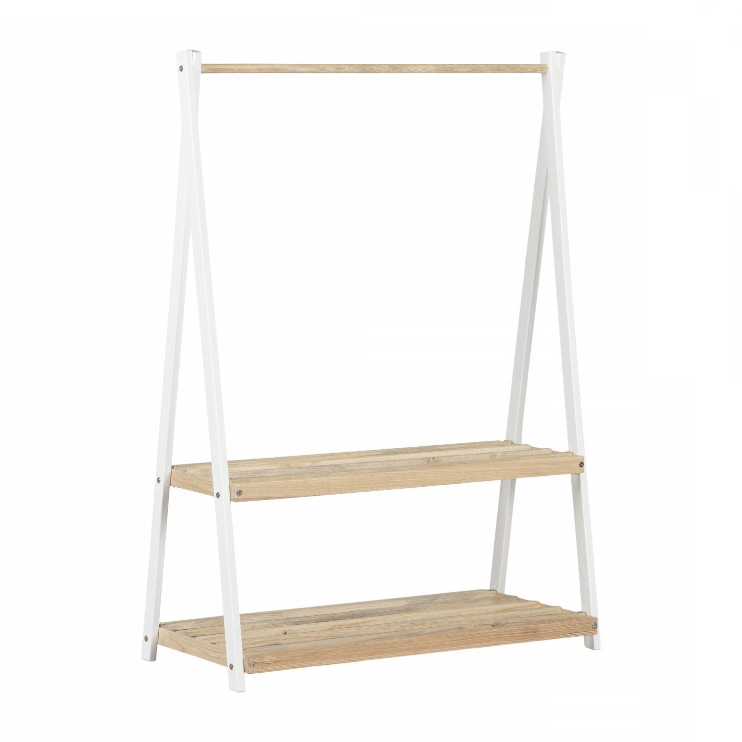 Convenient and easy to use, this wooden clothes rack with storage shelves allows your child to assert their taste and be independent. They can hang their favorite clothes on the bar and place their shoes on the two shelves that can each hold up to 25 lb. This minimalist clothing rack is perfect for kids ages 7 to 12. Thanks to its pine wood structure, enjoy a solid and stable open wardrobe. This type of wood is known for its rigidity and high resistance. You'll love its natural finish that will blend in well with your Scandinavian decor. Depending on your child's preferences, they can even paint it their favorite color.