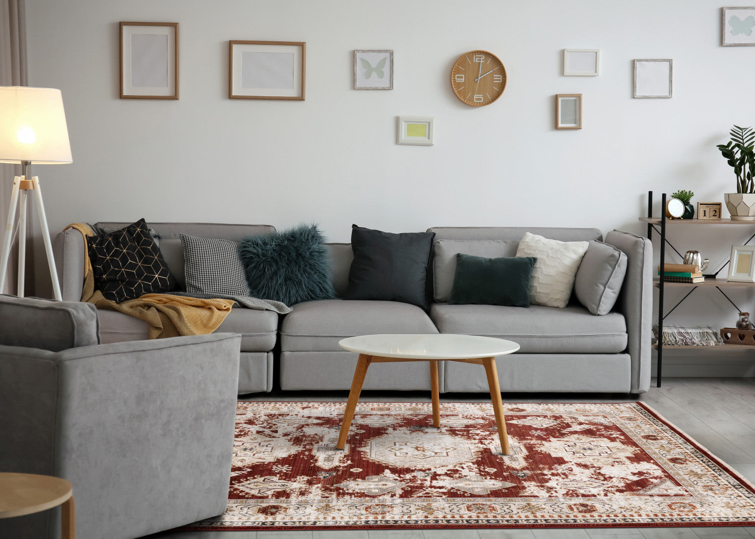 Blue and pink, red and orange; these colours and more harmonize the ornate patterns of the designs in the Sydney rug collection. Cream and beige work as background colours and form a short and fashionable fringe on either end of the rug. Underfoot is a dense, plush pile that feels soft and springy.