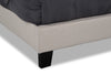 Savour the softness of this Tara queen bed. The tall headboard and apron are each upholstered in an elegant, beige linen-look fabric. This soft material lightens your room while creating a cozy space you'll look forward to nestling up against. Button-tufting and square accent stitching also provide traditional touches. However, the clean-cut design and black wooden legs mean this fine slumbering space will look equally chic in a modern setting.