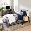 Savour the softness of this Tara twin bed. The tall headboard and apron are each upholstered in an elegant, grey linen-look fabric. This soft material lightens your room while creating a cozy space you'll look forward to nestling up against. Button-tufting and square accent stitching also provide traditional touches. However, the clean-cut design and black wooden legs mean this fine slumbering space will look equally chic in a modern setting.