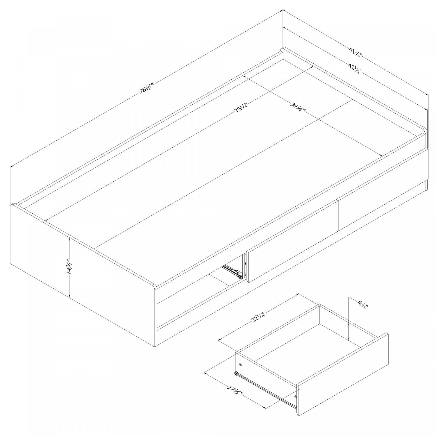 Width: 20.75" (52.7 cm) Height: 4.5" (11.4 cm) Depth: 85" (215.9 cm)