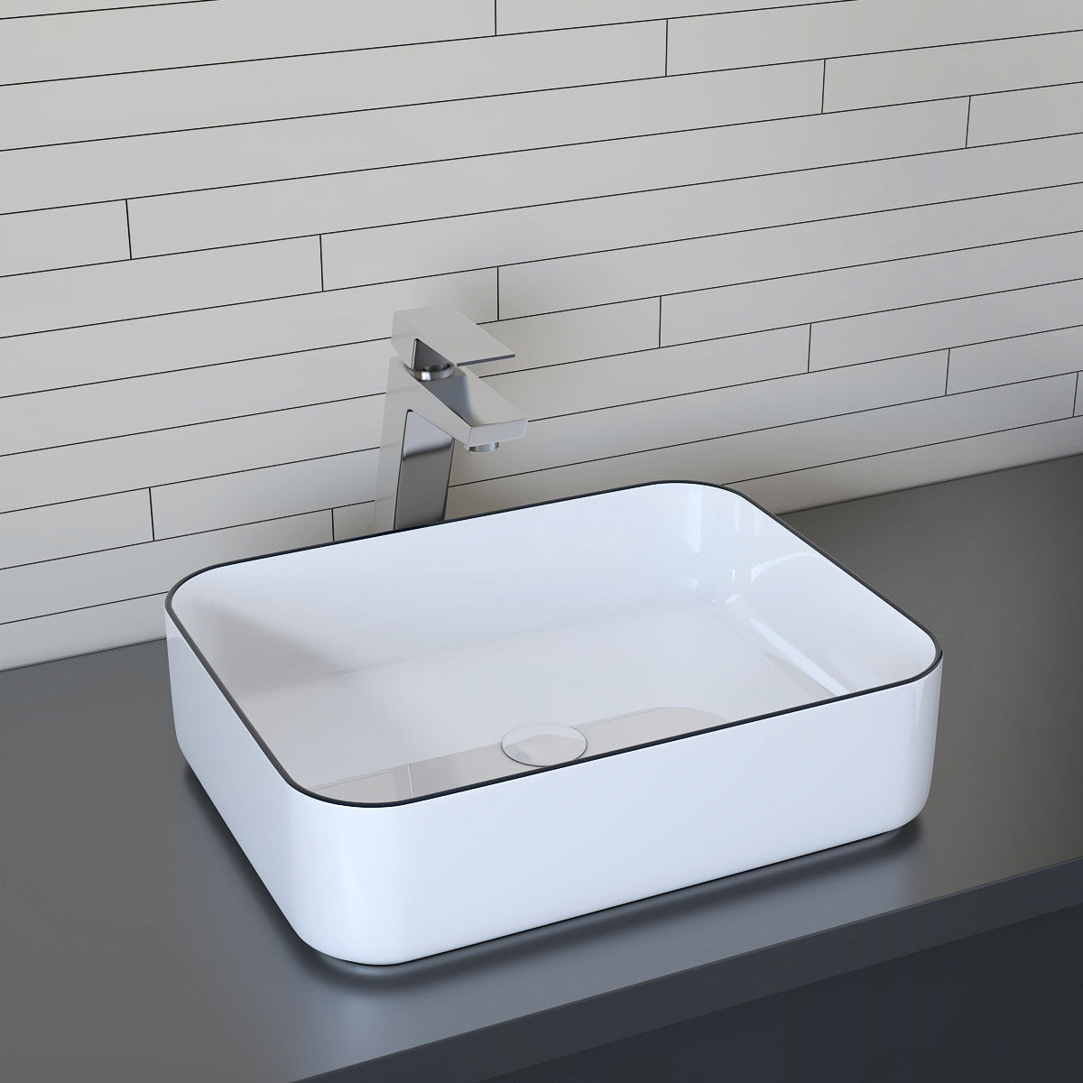This unique above-the-counter ceramic art basin is a piece of art that will transform your bathroom and will quickly become the center of attraction. The basin has a glossy white&black outling that combines design and practicality very well.Recommended for all contemporary bathrooms.