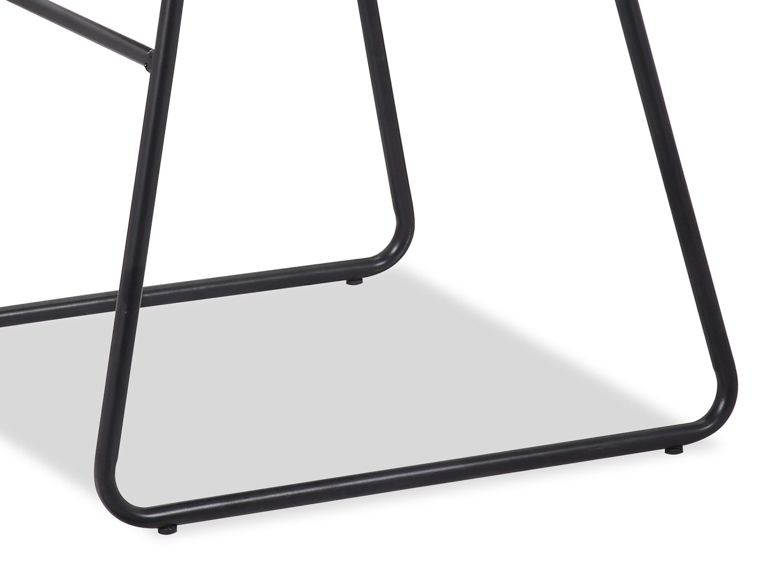 Enhance your next dinner party with the simple beauty of the Tess brown accent dining chair. Covered in luxurious faux leather and filled with high-density foam, this inviting armless scoop seat is ready to cradle you. Thin legs of black, powder-coated iron help keep you stable, no matter how exciting the party is. Decorative zigzag stitching lines the edge of the chair in a contrasting colour to add an extra splash of style. Add the refined sparkle of the Tess chair to lighten up your dining space, and let your next big family dinner shine.