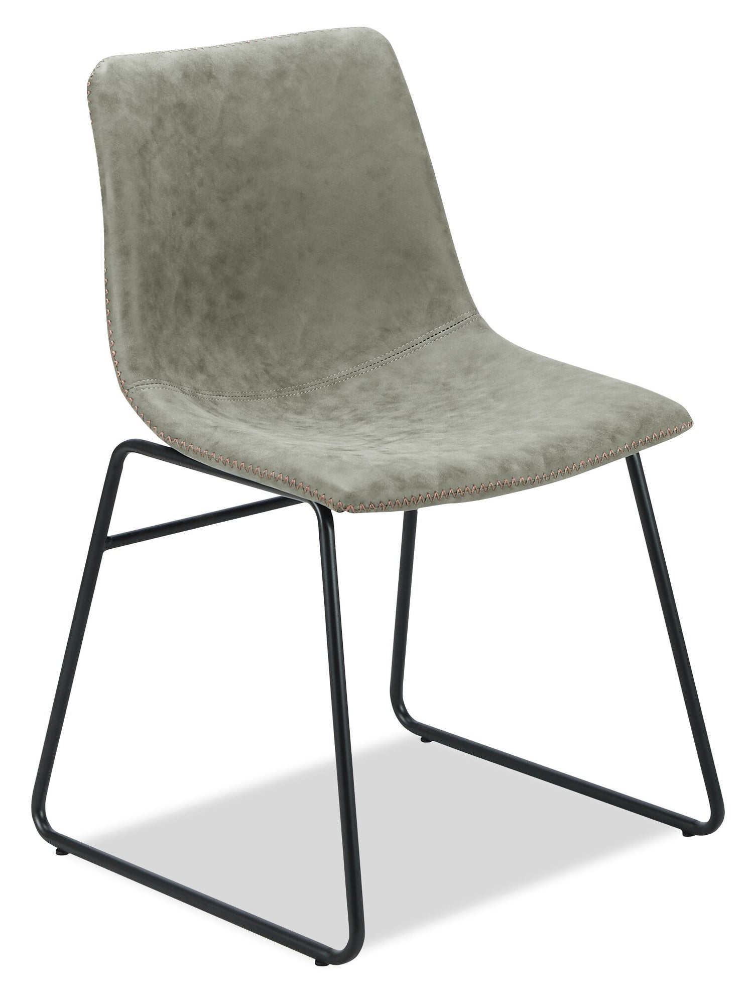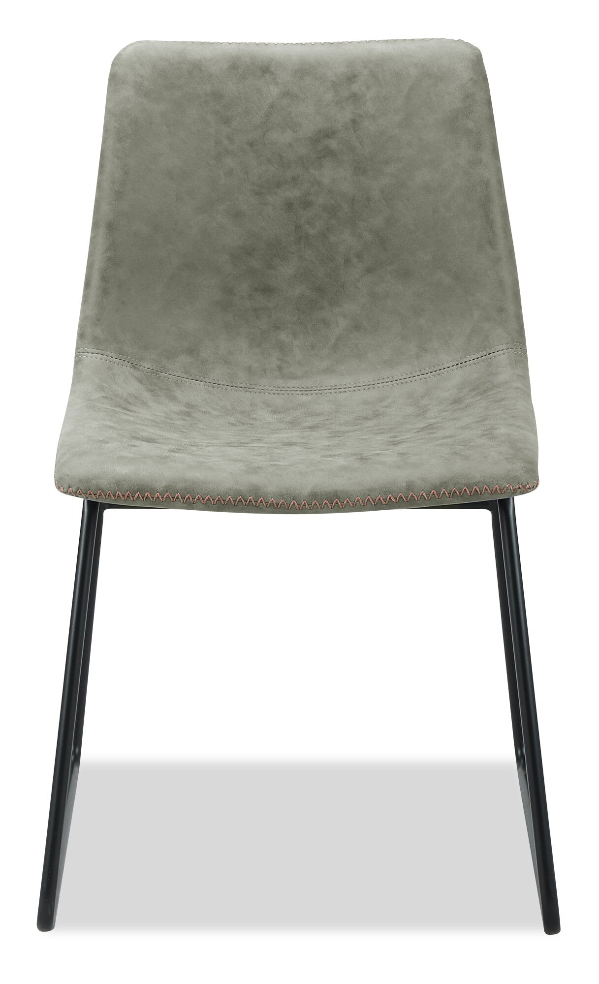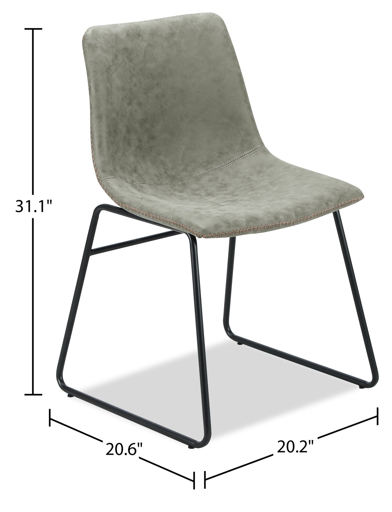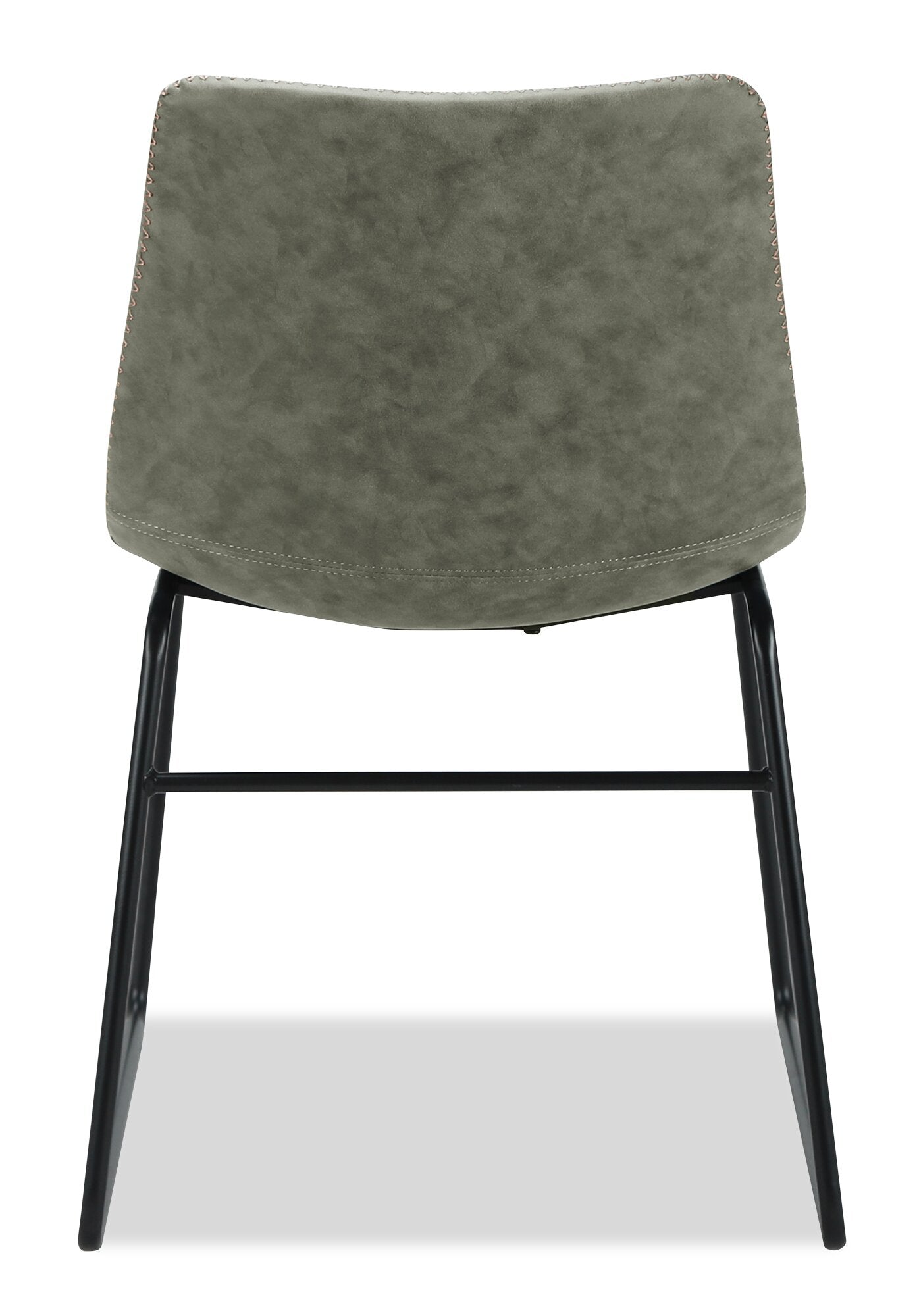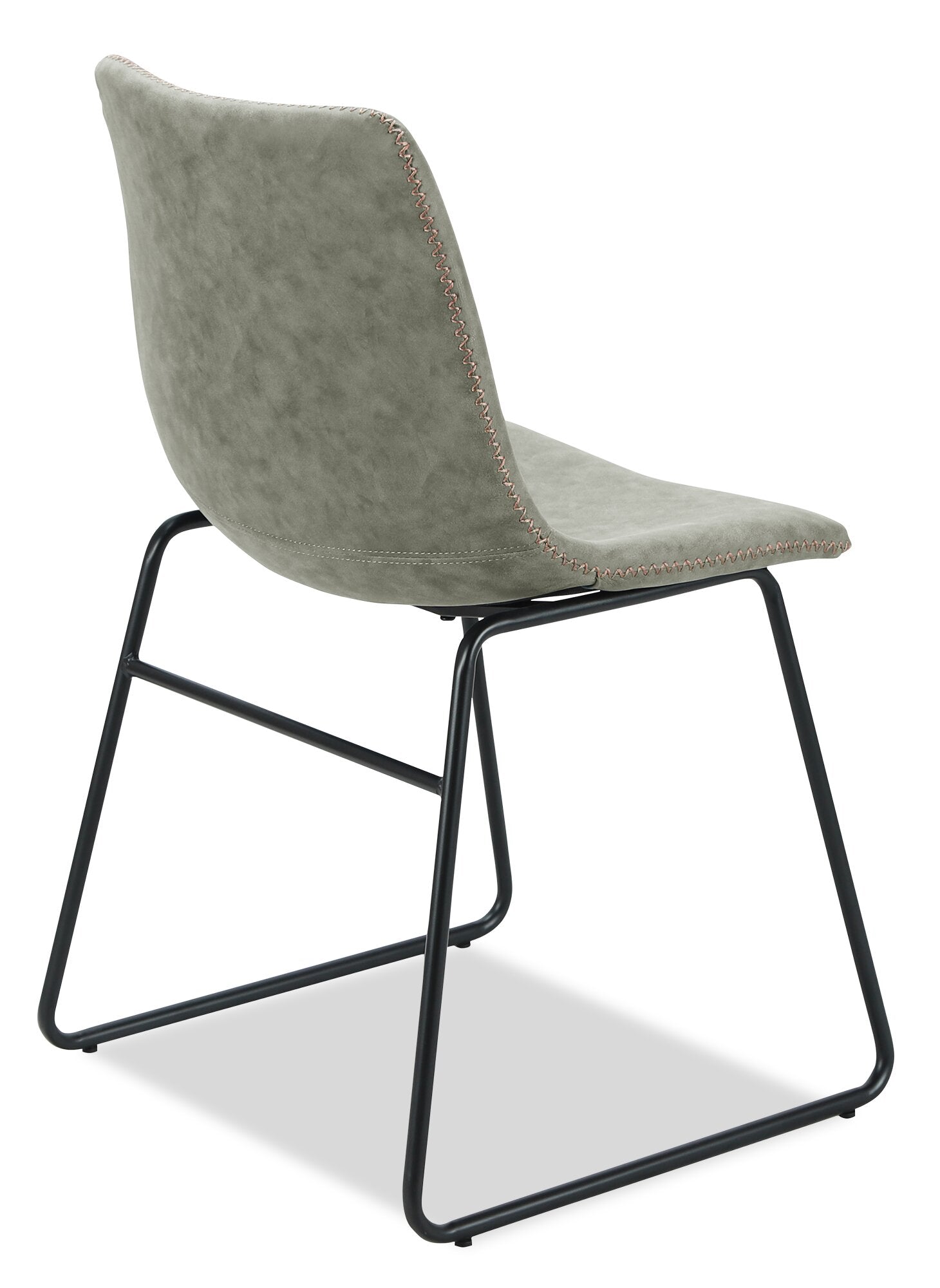 Enhance your next dinner party with the simple beauty of the Tess khaki accent dining chair. Covered in luxurious faux leather and filled with high-density foam, this inviting armless scoop seat is ready to cradle you. Thin legs of black, powder-coated iron help keep you stable, no matter how exciting the party is. Decorative zigzag stitching lines the edge of the chair in a contrasting colour to add an extra splash of style. Add the refined sparkle of the Tess chair to lighten up your dining space, and let your next big family dinner shine.
