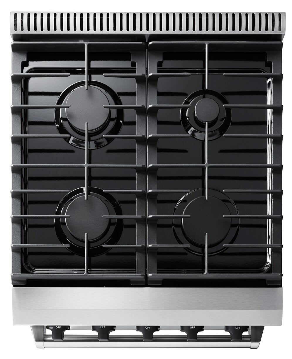 High-Powered Burner: Continuous Cast-Iron Grates: Even Heat Broiler: Porcelain Spill Tray: |