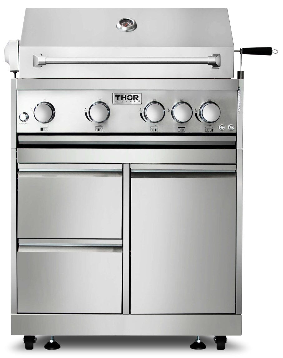 | Installation Requirements | Designed to fit underneath of the Thor Kitchen 4-Burner Gas Barbecue Grill with Rotisserie: MK04SBBQ (sold separately). |