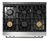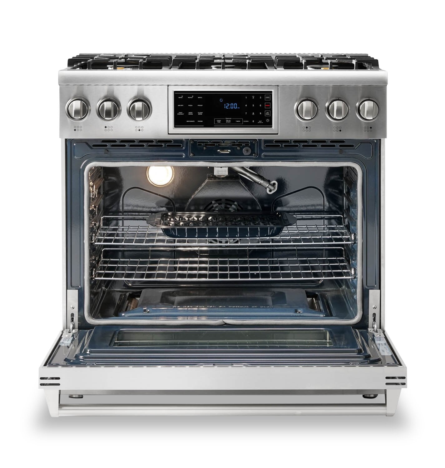 High-Powered BTU Burners: Tilt Panel: True Convection Fan: Air Fry: Multiple Cooking Modes: Continuous Cast-Iron Grates: Self-Clean: |