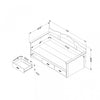 Width: 27.4" (69.6 cm) Height: 4.49" (11.4 cm) Depth: 49.33" (125.3 cm)