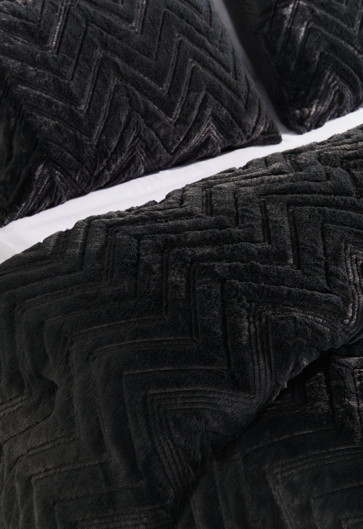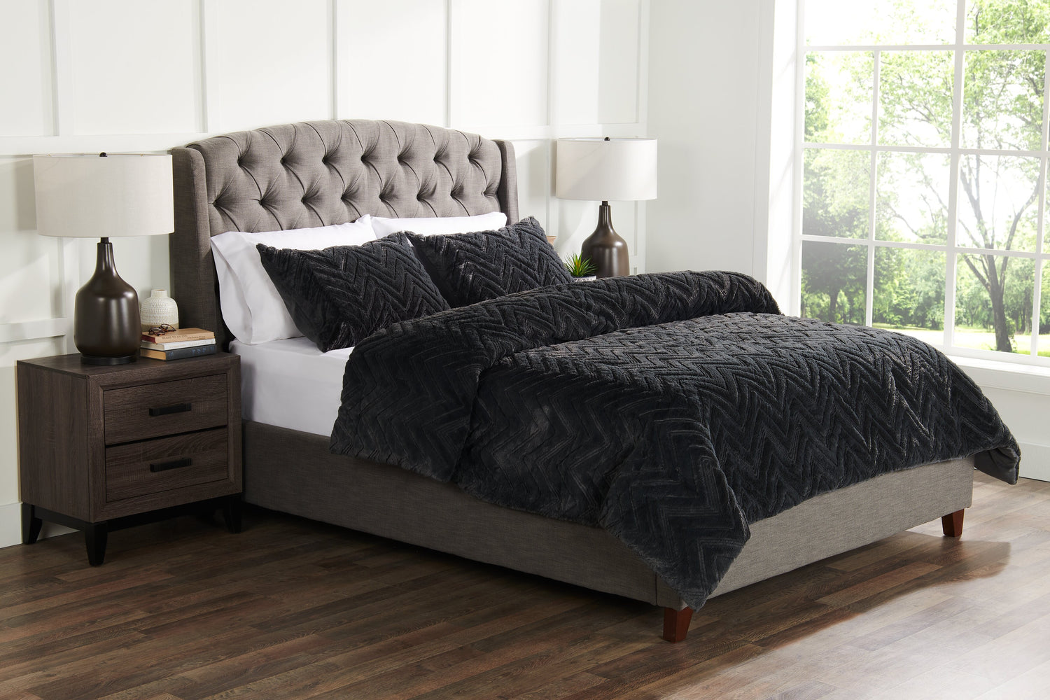 You will feel like you’re sleeping wrapped up in a cloud with this three-piece Tilda comforter set. Made of durable polyester and faux fur, it has a chevron design and reverses to a super soft plush. The charcoal colour of this bedding will complement most bedroom decor palettes. Warm and cozy, this Tilda comforter set will bring incredible style and luxury to your space, making your bedroom look and feel like a five-star hotel.