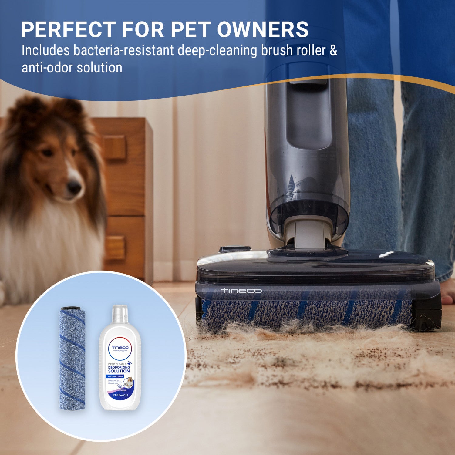 Power through messes with tineco’s go h2o hammerhead messdetect, the 3-in-1 mop, vacuum, and self-cleaning system designed for busy homes—especially those with pets. Messdetect technology analyzes dirt levels in real time, adjusting suction and water flow for a shiny, streak-free clean every time—without draining battery on light messes. Track your progress with the smart led display, which shifts from red to blue as messes are cleared. The zero tangle brush handles pet hair effortlessly, while the bacteria-resistant deep-cleaning brush and anti-odor solution keep your home fresh. 60% larger water tanks mean fewer refills, and the enhanced hammerhead brush with 128° swivel steering and flat lean design provides extended reach for cleaning under furniture with ease. When you’re done, the dual self-cleaning and charging dock keeps your device fresh and ready for the next clean.