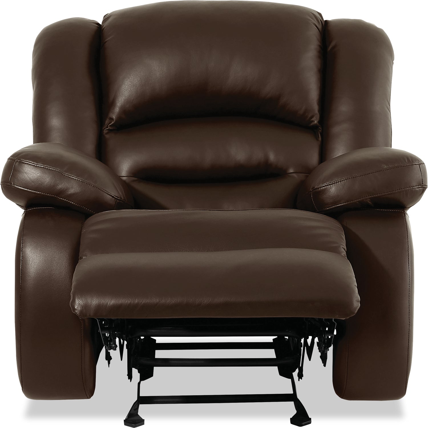 Let this brown-hued Toreno rocking reclining chair be the shining star of your home's comfort and style universe. Featuring Italian-finished genuine leather on the entire seating area, this piece will invite your guests to unwind on this luxurious upholstery. Underneath the leather is robust high-density foam, ready to embrace your tired body at the end of your busy day. Pull the lever on the seat's side to lie back and make your lounge time feel even better. Stretch out and get cozy on this elegant Toreno reclining chair.