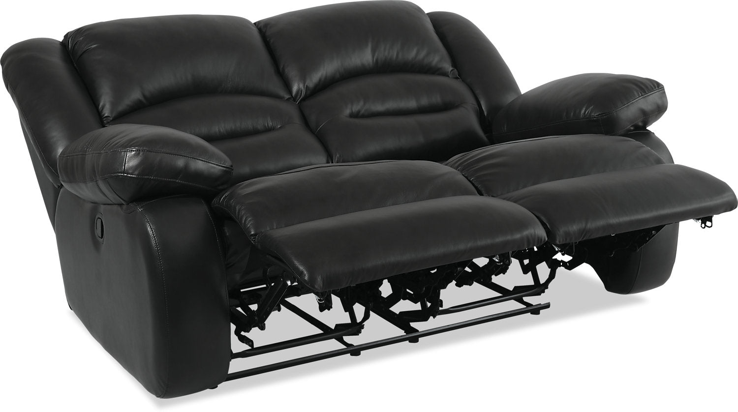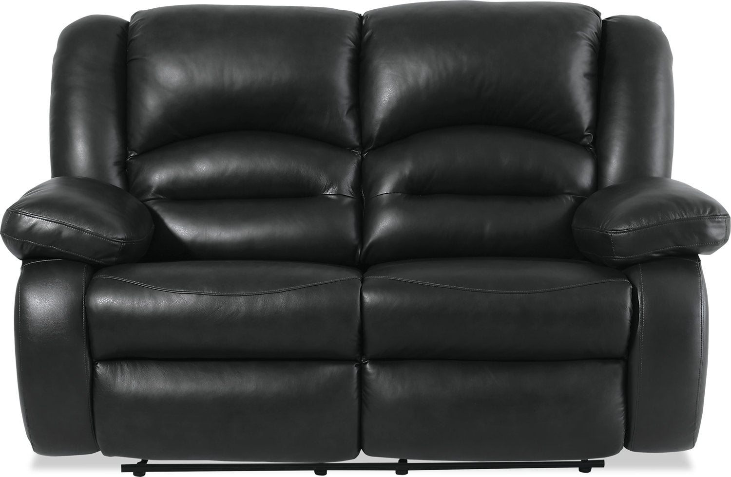 Let this black-hued Toreno reclining loveseat be the shining star of your home's comfort and style universe. Featuring Italian-finished genuine leather on the entire seating area, this piece will invite your guests to unwind on this luxurious upholstery. Underneath the leather is robust high-density foam, ready to embrace your tired body at the end of your busy day. Pull the lever on the loveseat's side to lie back and make your lounge time feel even better. Stretch out and get cozy on this elegant Toreno reclining loveseat.