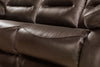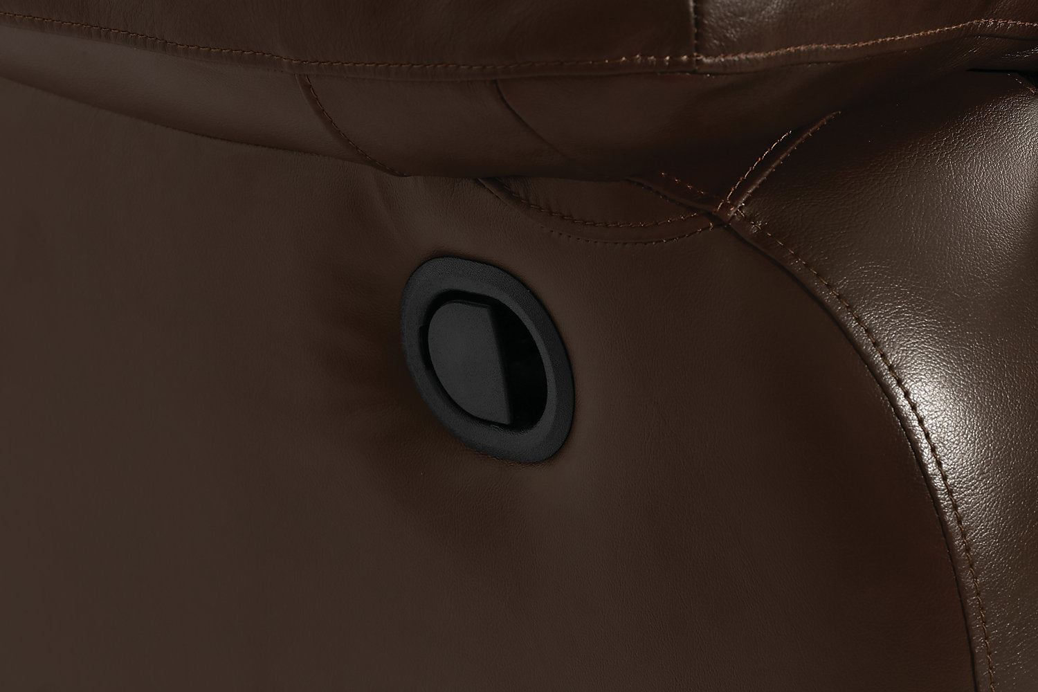 Let this brown-hued Toreno reclining sofa be the shining star of your home's comfort and style universe. Featuring Italian-finished genuine leather on the entire seating area, this piece will invite your guests to unwind on this luxurious upholstery. Underneath the leather is robust high-density foam, ready to embrace your tired body at the end of your busy day. Pull the lever on the couch's side to lie back and make your lounge time feel even better. Stretch out and get cozy on this elegant Toreno reclining sofa.